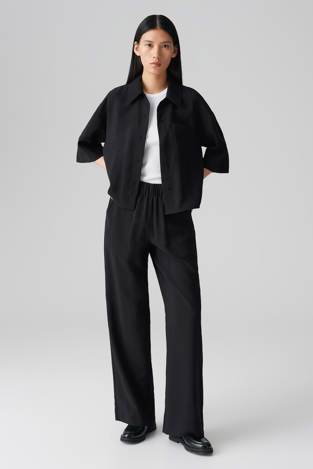 Cargobroek Marou van Opus biedt een stijlvolle minimalistische look met een elastische taille en wijde pijpen. Deze cargobroek is eenvoudig aan te schuiven en is een perfecte aanvulling op elke garderobe dankzij het comfort en de veelzijdigheid die het biedt.