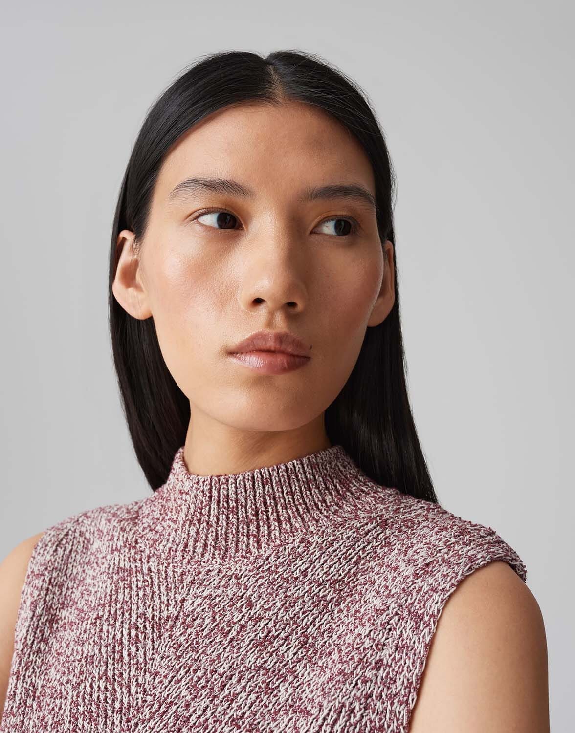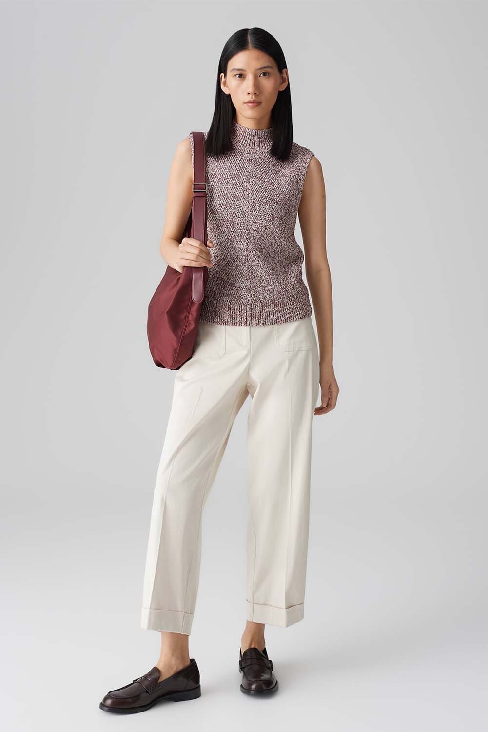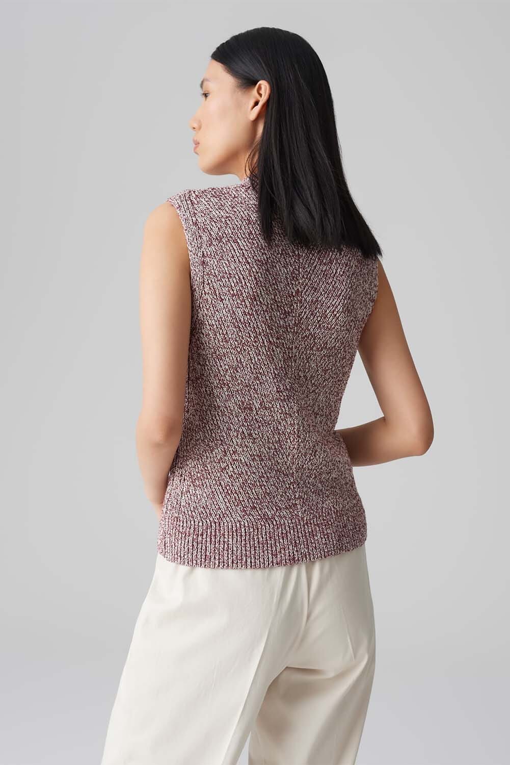 De Gebreide Top Pohilo Slank van Opus is een stijlvolle, mouwloze top met een opstaande kraag. Deze dames top heeft een boxy fit, ideaal voor een minimalistische look. Het hoogwaardige breisel zorgt voor comfort en veelzijdigheid in je garderobe.