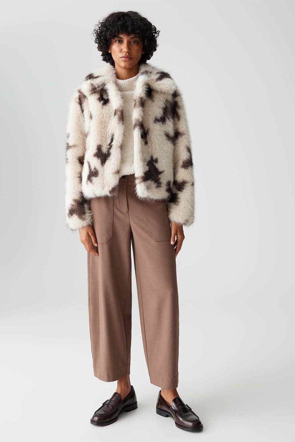 De Jas Hajora van Opus is een dames jas met een verfijnde uitstraling. Deze gewatteerde jas heeft een opvallende dierenprint, lange mouwen en een losse pasvorm. De jas sluit met knopen en drukknopen en heeft zakken aan de voorkant voor extra functionaliteit.