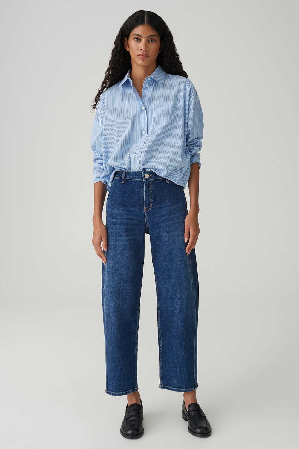 De moderne snit met een uitgebalanceerde ovale pijp belichaamt de typische LOLAH FLOW barrel leg look en is uiterst comfortabel om te dragen. De jeans is gemaakt van cross-hedge denim en heeft een opvallende cross-hatched look die een spannende, individuele textuur creëert. Mate van rek: Comfort Stretch. Binnenbeenlengte in elke maat: L28 ca. 70 cm.