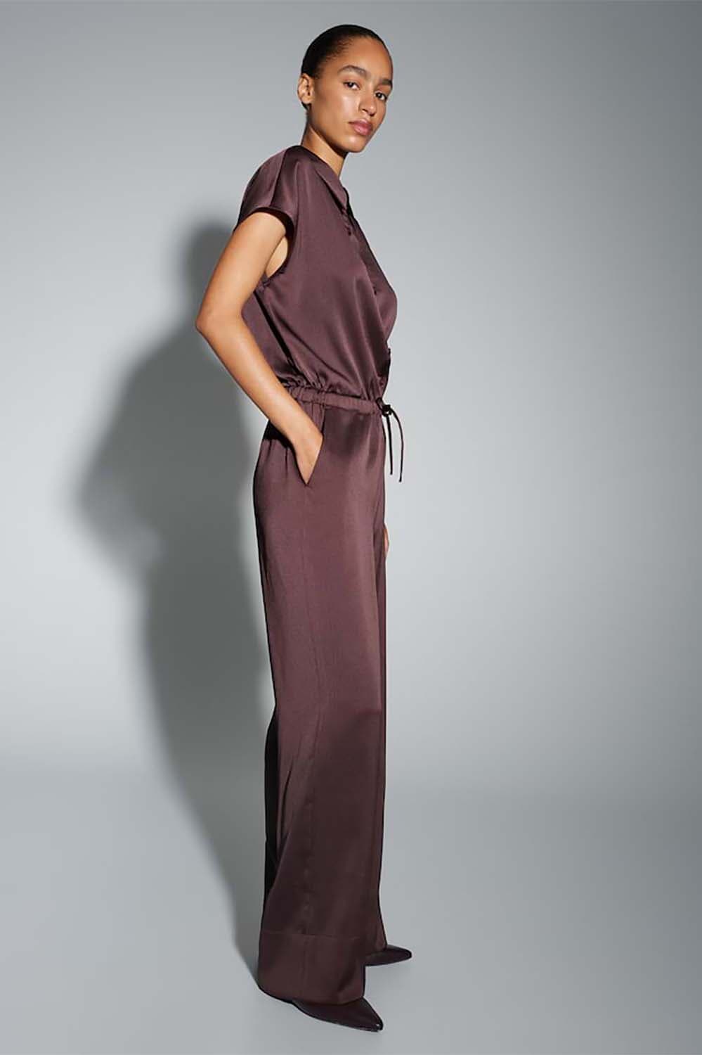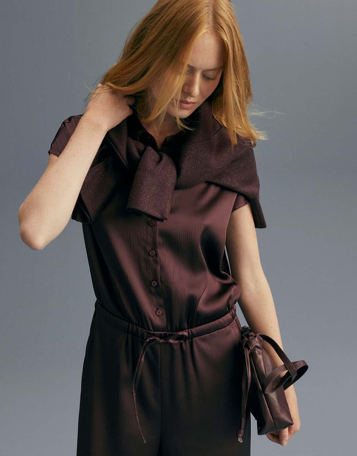 De Jumpsuit Mendie Night van Opus straalt verfijning uit. Met een elastische tailleband, opstaande kraag, en handige zakken op de voorzijde is deze effen dames jumpsuit stijlvol en praktisch. De korte mouwen en overhemdkraag zorgen voor een elegante, tijdloze uitstraling.