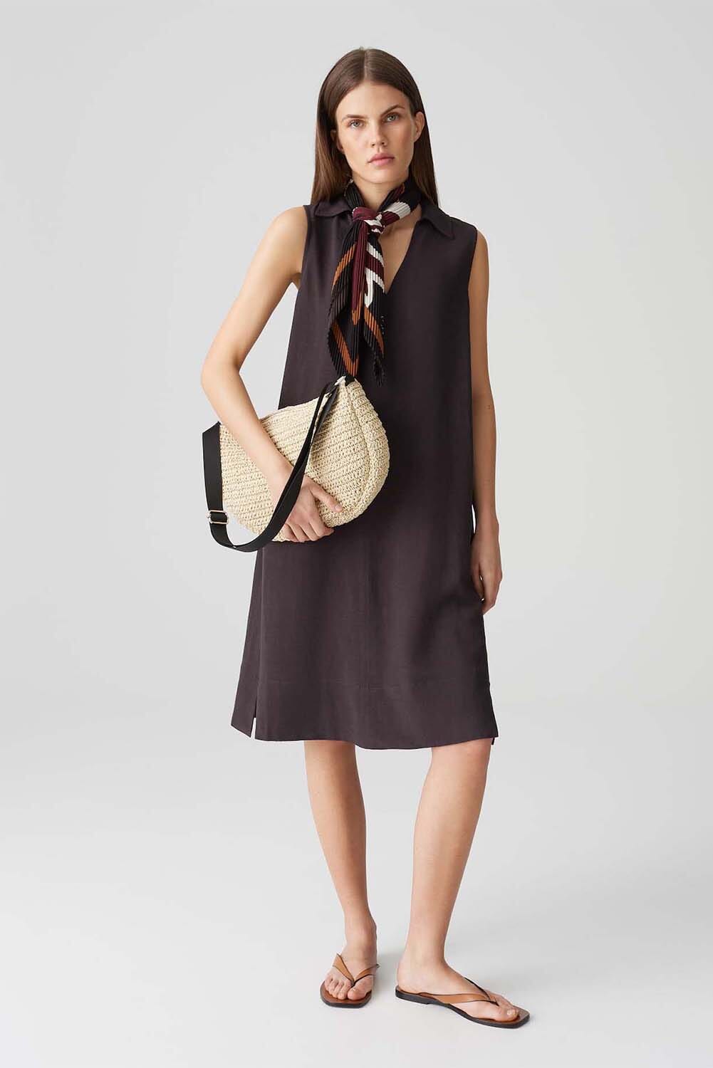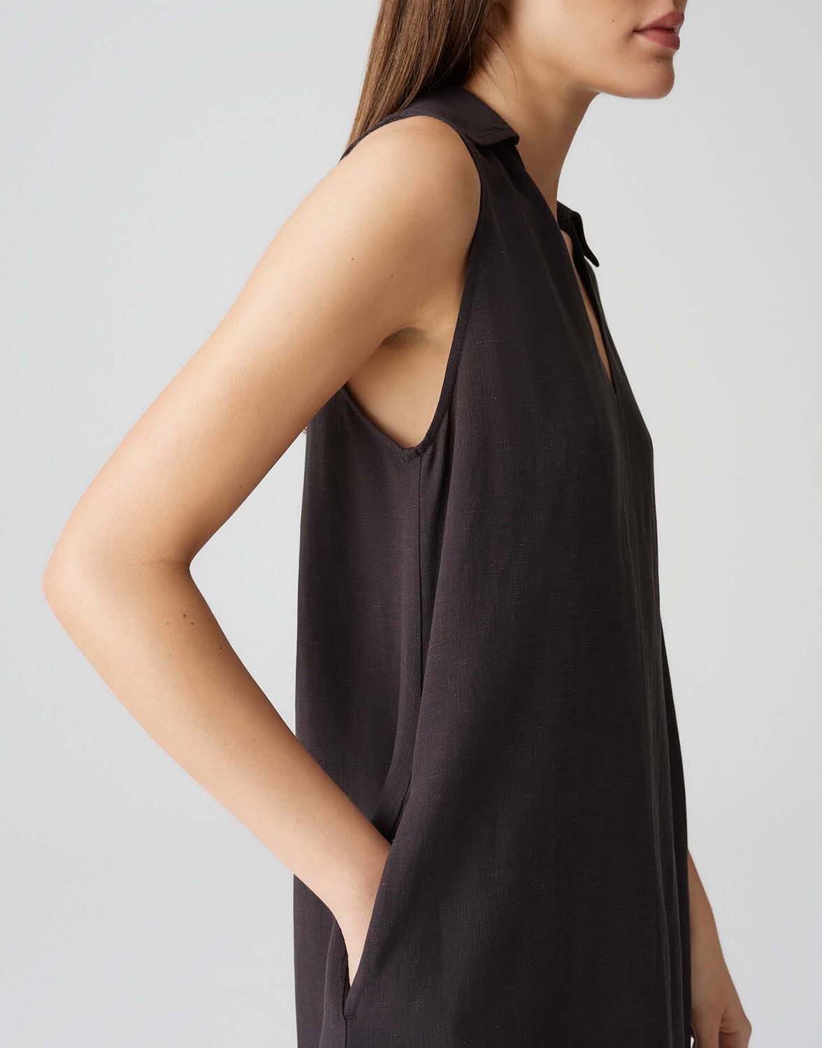 De jurk Wika van Opus is een stijlvolle dames jurk met een minimalistisch ontwerp. Deze effen midi jurk heeft een v-hals en geen mouwen, wat een casual uitstraling geeft. De jurk heeft een normale taille en is perfect voor alledaagse gelegenheden.
