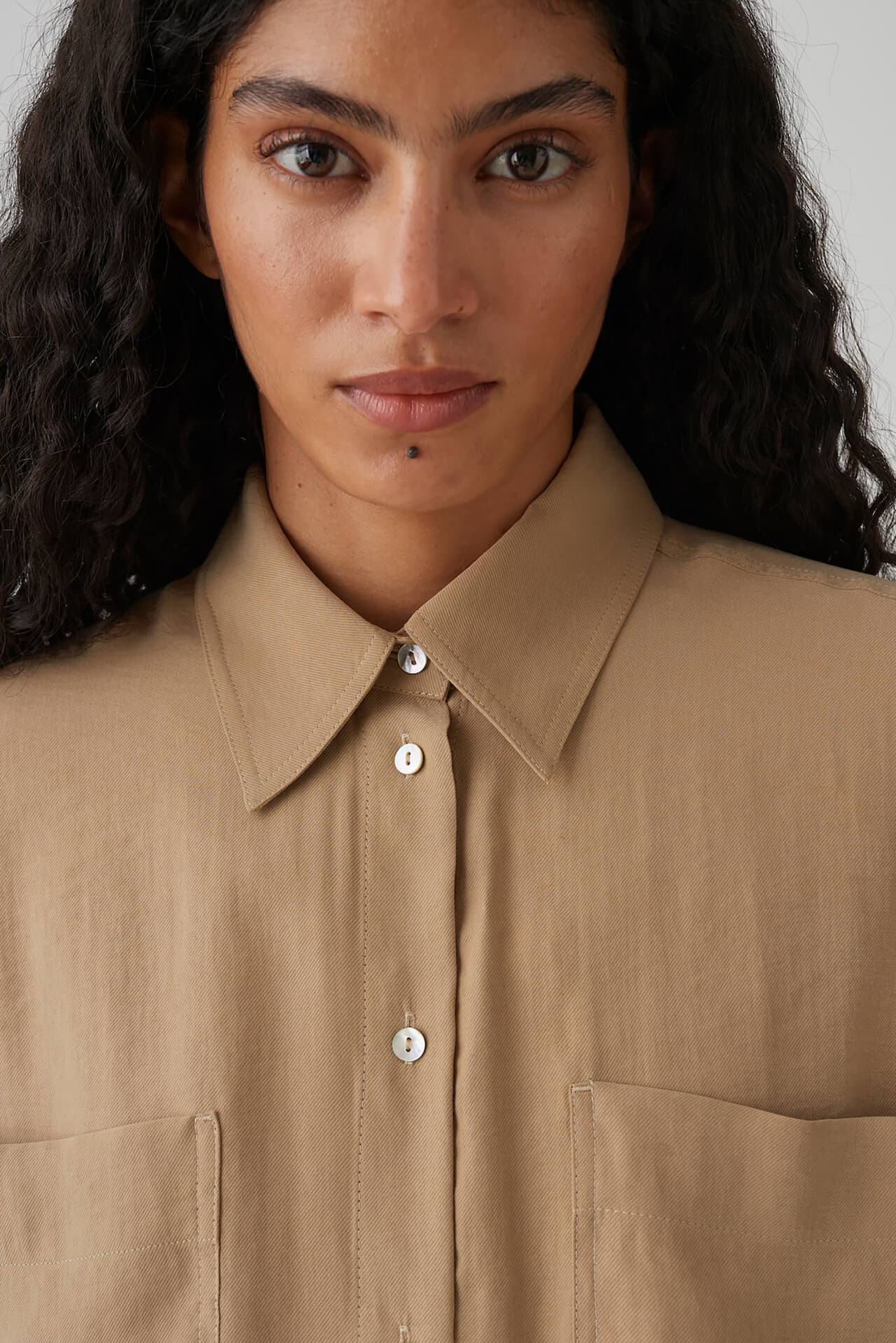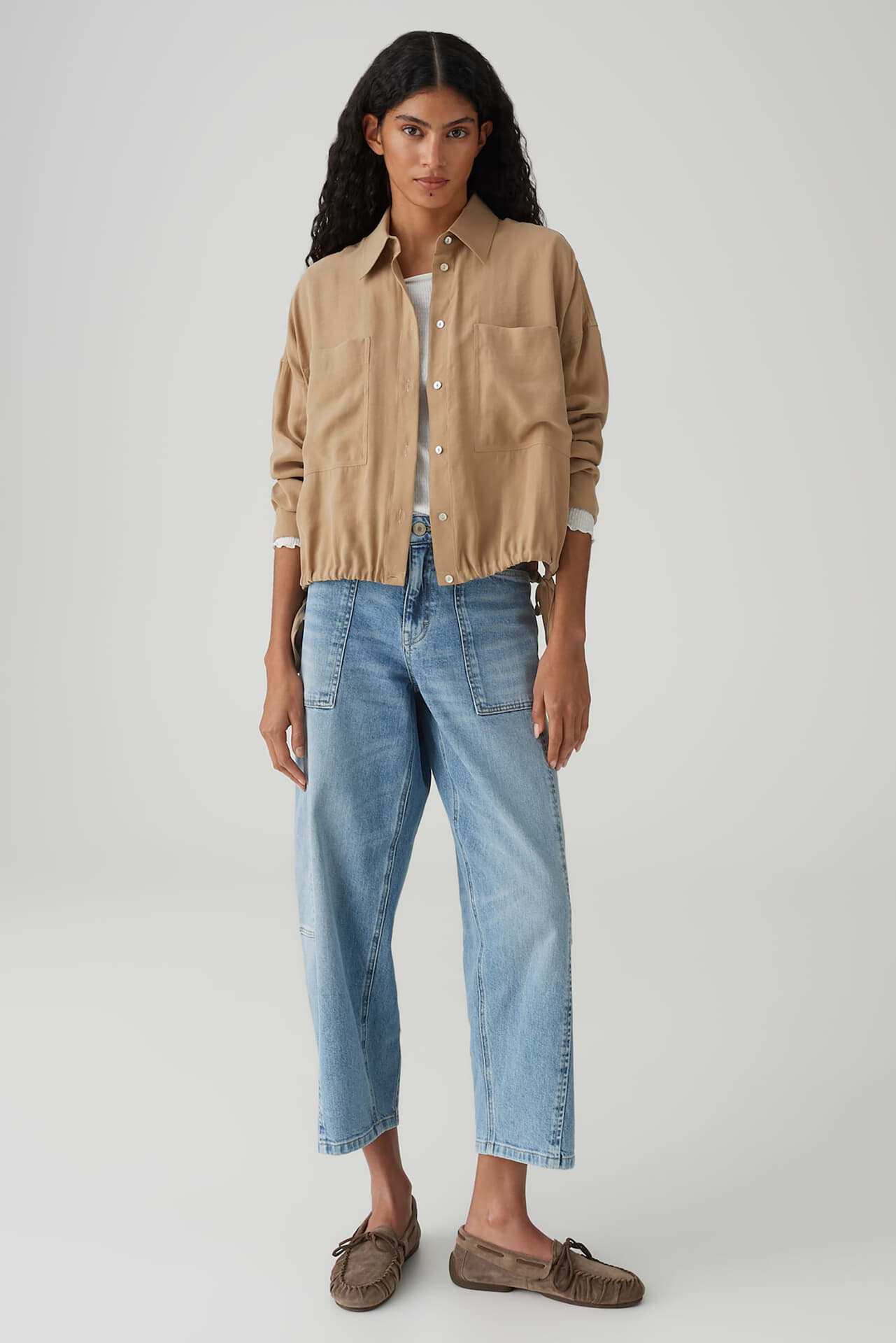 Een must-have voor het begin van het seizoen: de FIBERTA blouson blouse combineert een ballonzoom en opvallende utility zakken met een lichte, fluweelachtige feel, waardoor modieuze contrasten ontstaan. Veelzijdig te dragen als overshirt met jeans, creëert het de perfecte look voor de eerste zonnige lentedagen. Ruglengte ca. 57 cm voor maat 36.