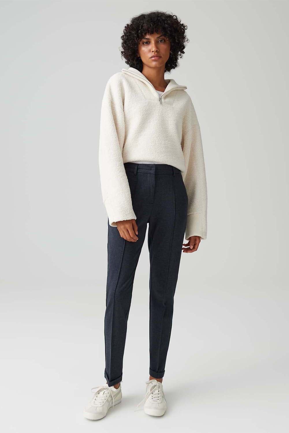 Pantalon Melina van Opus is een stijlvolle dames pantalon met een casual stijl. De normale taille en slim leg pasvorm geven een ontspannen en modieuze uitstraling, terwijl de lange mouwen zorgen voor comfort. Ideaal voor een veelzijdige en toegankelijke look.