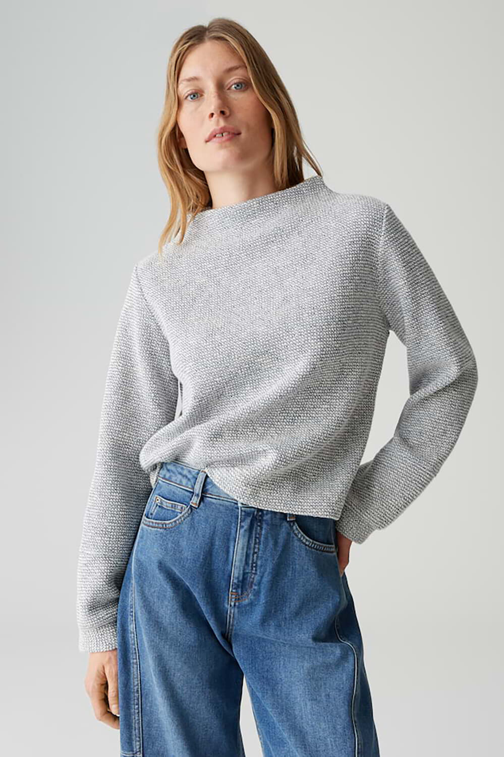 De Sweater Glimsa van Opus is een casual dames sweater met een opstaande kraag en lange mouwen. De losse pasvorm zorgt voor comfort en een ontspannen uitstraling. Ideaal voor elke gelegenheid, combineer deze stijlvolle trui met je favoriete broek voor een moeiteloze look.