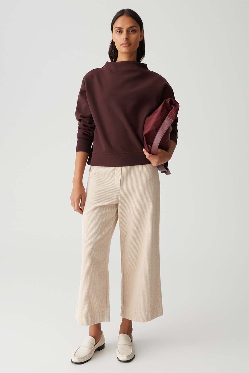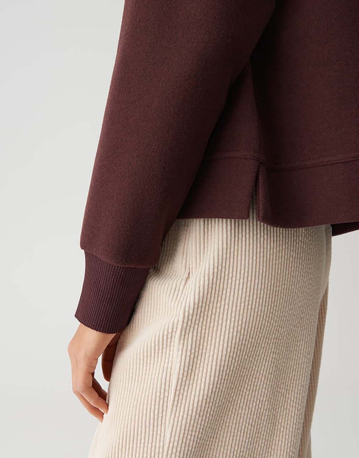 De Sweater Gruger van Opus, een stijlvolle dames sweater met een relaxed pasvorm, heeft een opstaande kraag en boothals. De ribgebreide mouwboorden en effen patroon maken het een perfecte keuze voor casual gelegenheden. Deze sweater combineert comfort met een eigentijdse uitstraling.