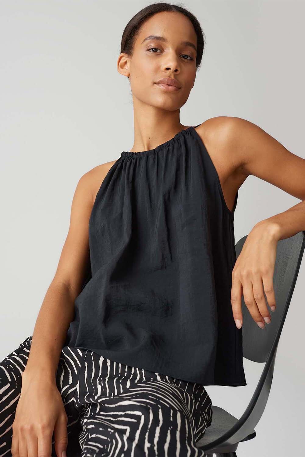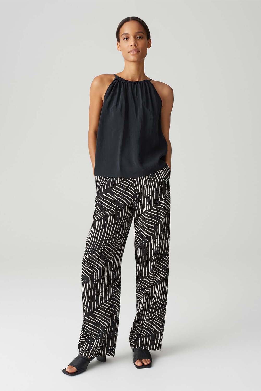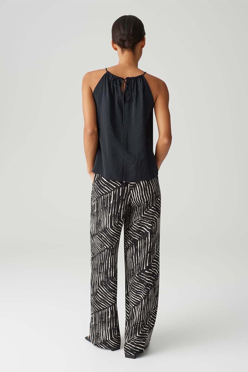 De Top Foyage van Opus is een stijlvolle dames blouse met een minimalistische uitstraling. Deze blouse heeft een halternek en een losse pasvorm, ideaal voor casual gelegenheden. Het effen patroon en de mouwloze afwerking maken het een veelzijdige keuze voor elke garderobe.