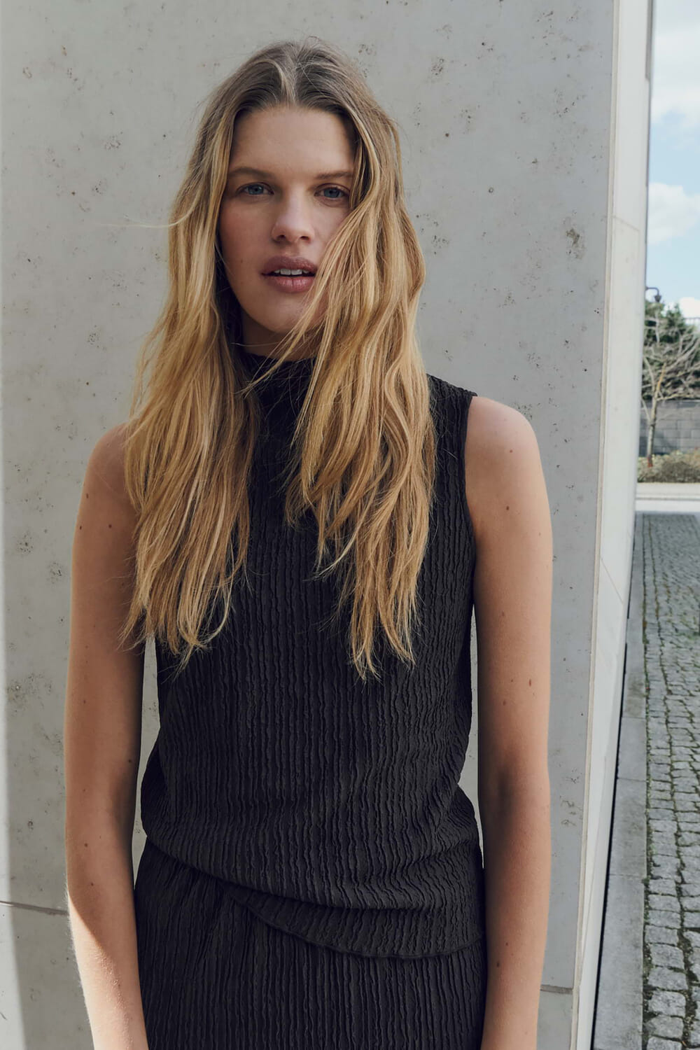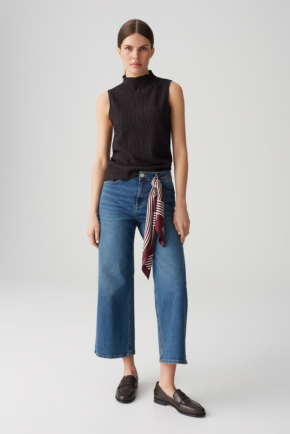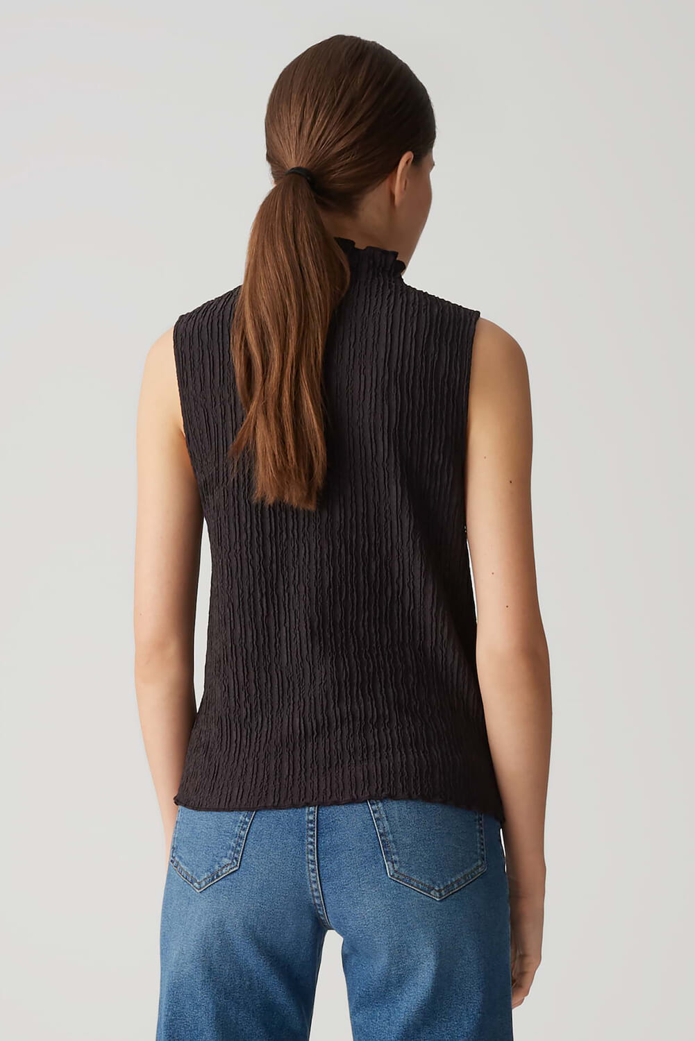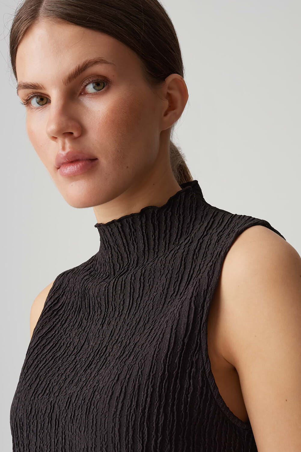 De Top Idala van Opus is een stijlvolle top met een minimalistisch design. Deze regular fit top heeft een mockneck en is mouwloos, perfect voor een moderne uitstraling. Het effen patroon maakt het veelzijdig en geschikt voor elke gelegenheid.