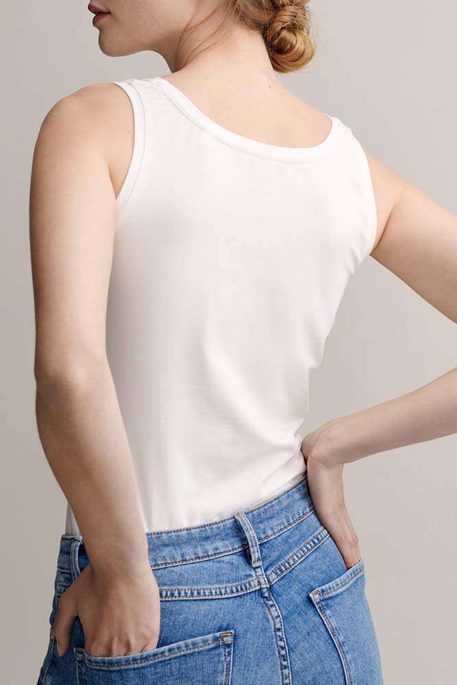De Top Imilia van Opus is een minimalistische dames top mouwloos met een U-hals en een regular pasvorm. Het effen ontwerp maakt het een veelzijdige keuze voor casual gelegenheden. Deze basis collectie top biedt comfort en stijl voor dagelijks gebruik. Ruglengte ca. 62 cm voor maat 36