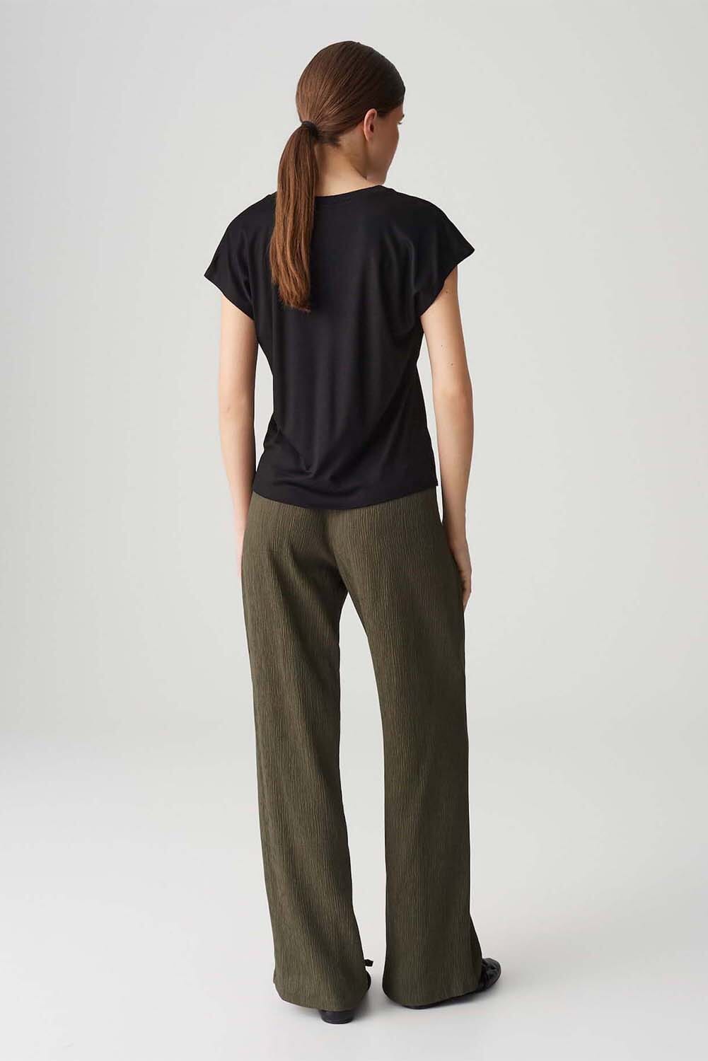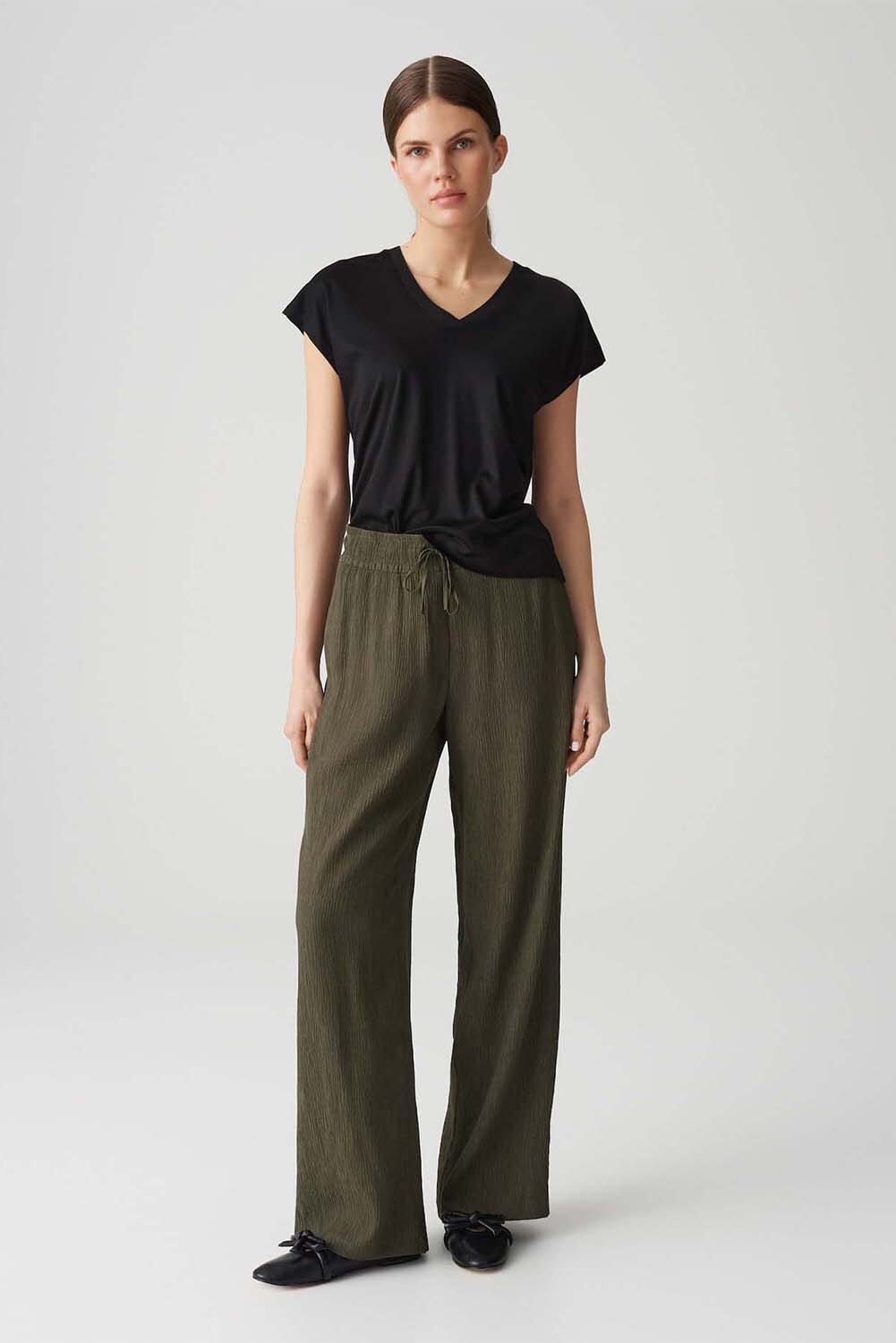 De Top Savilchen van Opus combineert een minimalistische stijl met een losse pasvorm, korte mouwen en een elegante V-hals. Deze effen dames top is perfect voor een stijlvolle, maar toegankelijke look die veelzijdig te combineren is.