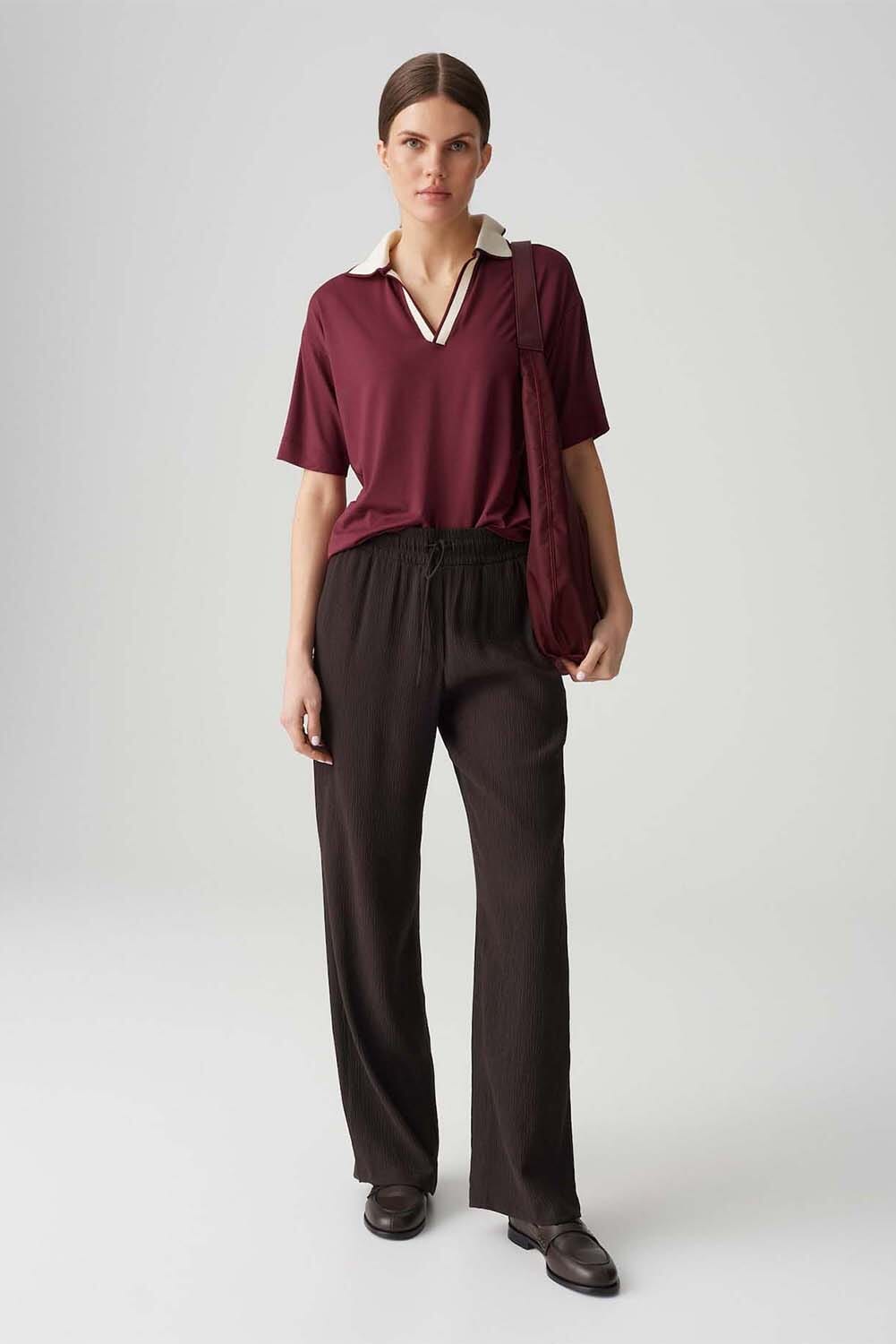 De Top Soffice van Opus is een casual polo met een charmante polokraag en v-hals. Deze loszittende polo is voorzien van korte mouwen en biedt een comfortabele pasvorm. Ideaal voor elke dag, straalt het zowel eenvoud als stijl uit.