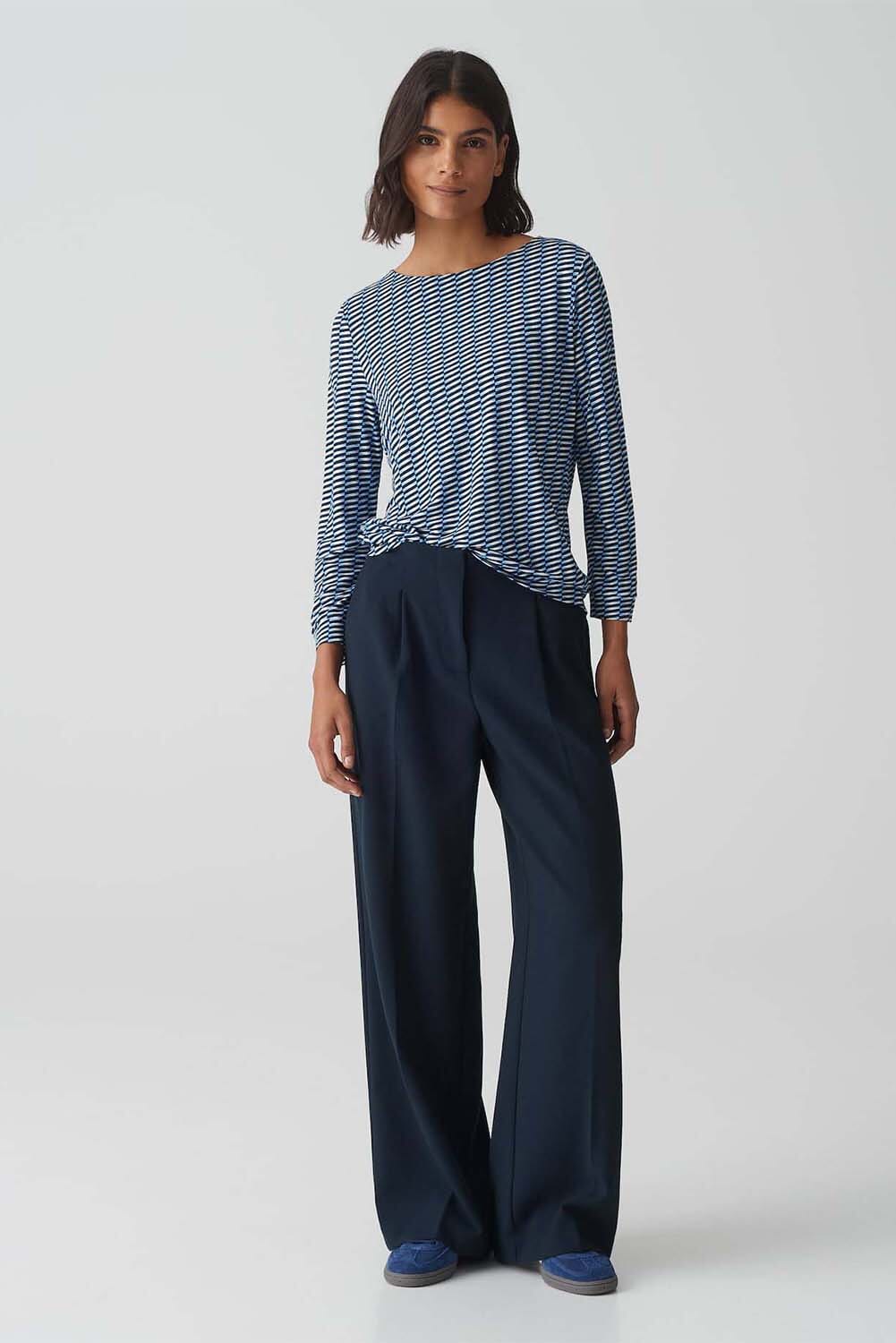 De Top Susta van Opus is een casual lange mouw top met een grafisch patroon. Deze dames top combineert stijl en comfort, perfect voor dagelijks gebruik. De lange mouwen en het unieke ontwerp maken het een veelzijdige keuze voor elke garderobe.