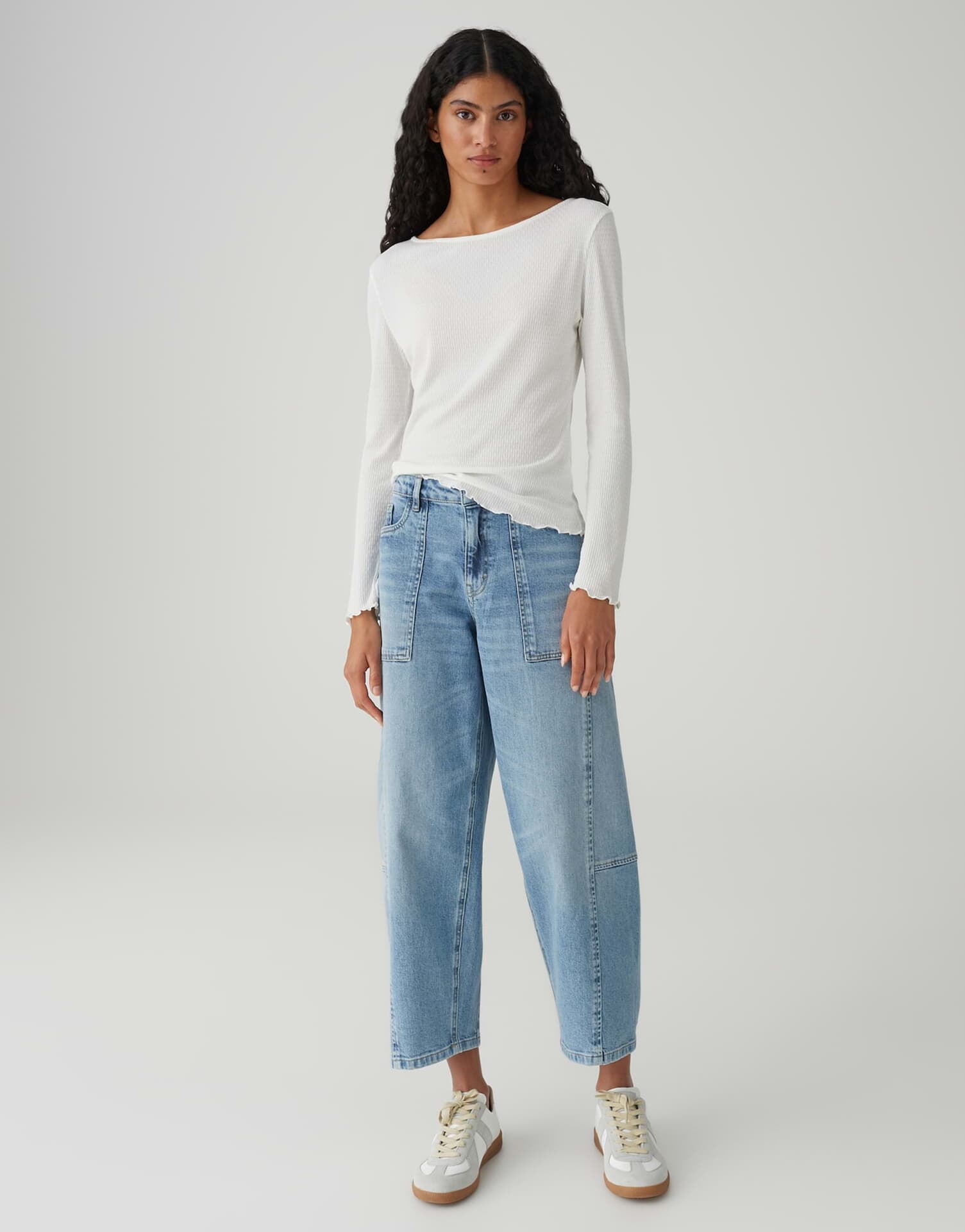 De Top Suzzo van Opus is een stijlvolle dames top lange mouw met een ronde halslijn en een casual stijl. Deze top biedt een regular en slimfit pasvorm met een effen patroon. Perfect voor een casual gelegenheid, combineer moeiteloos comfort en mode in één kledingstuk.