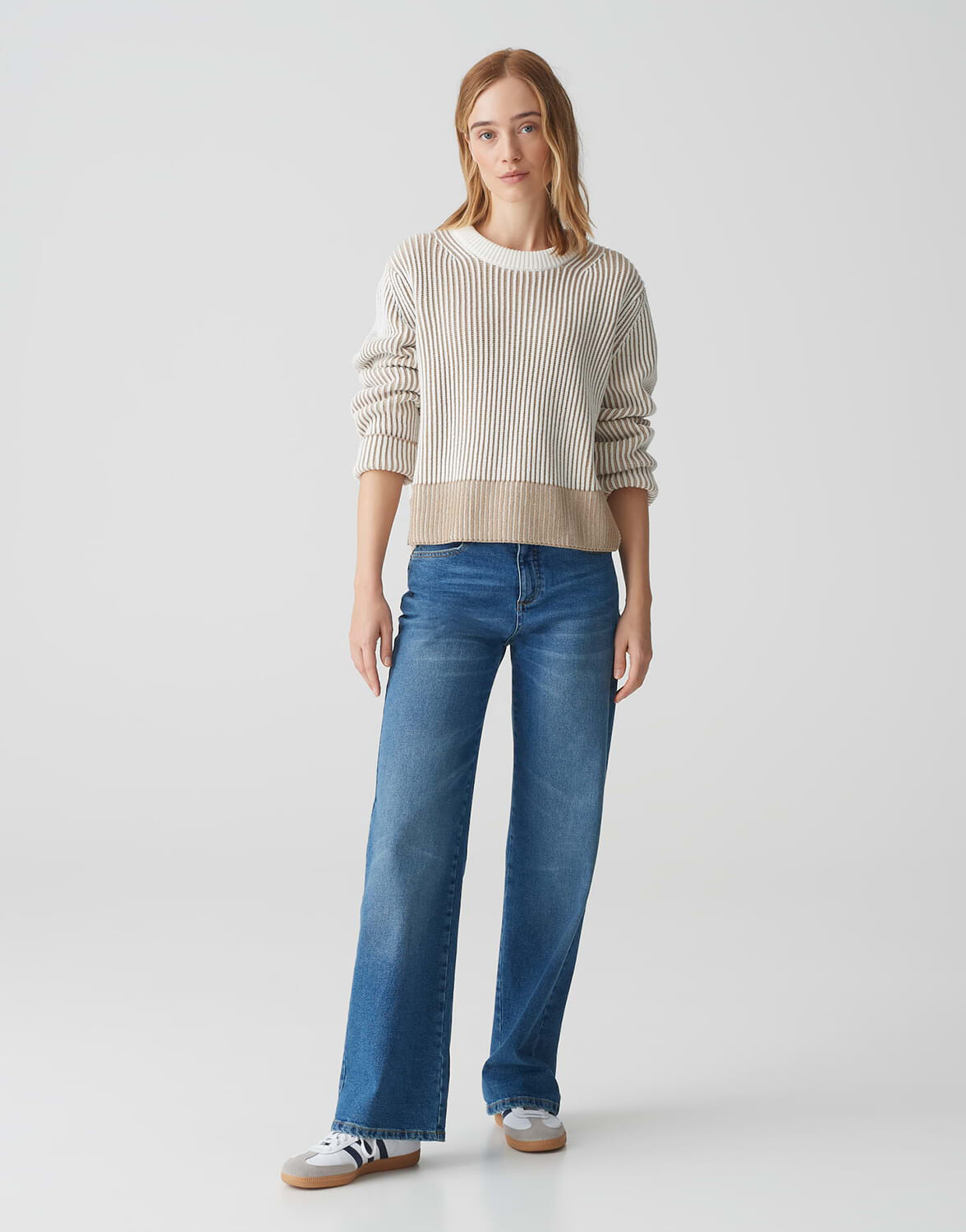De Trui Pagula van Opus is een stijlvolle toevoeging aan elke garderobe. Deze casual trui heeft een ronde hals en een loose fit, wat zorgt voor een comfortabele pasvorm. Met zijn lange mouwen en streep patroon is deze trui perfect voor elke gelegenheid.