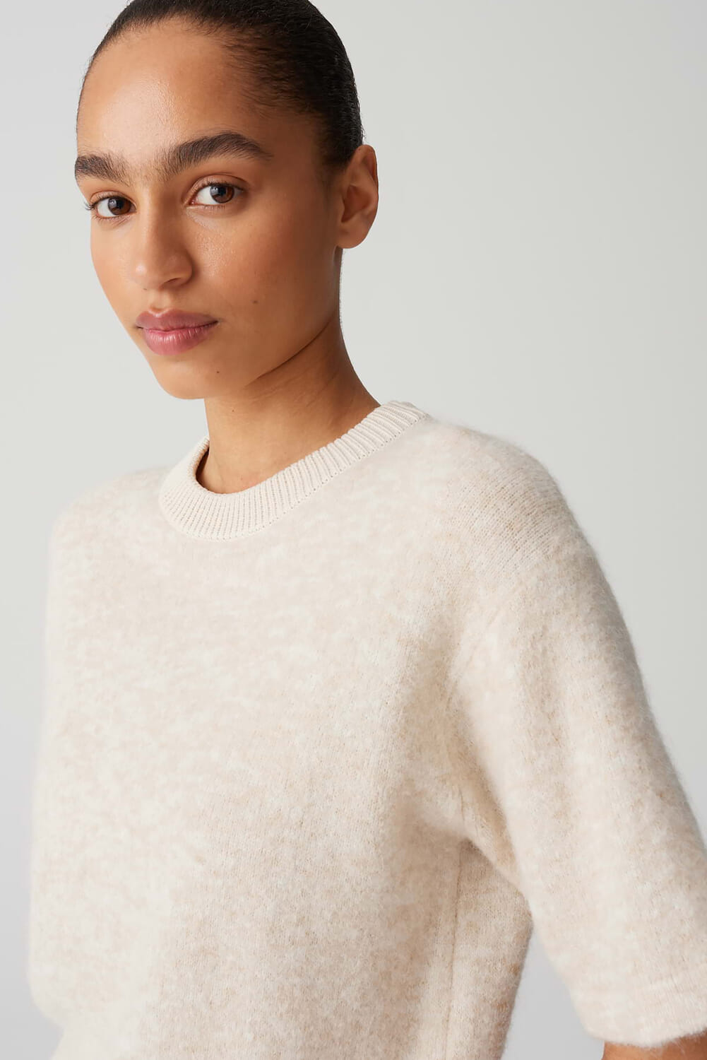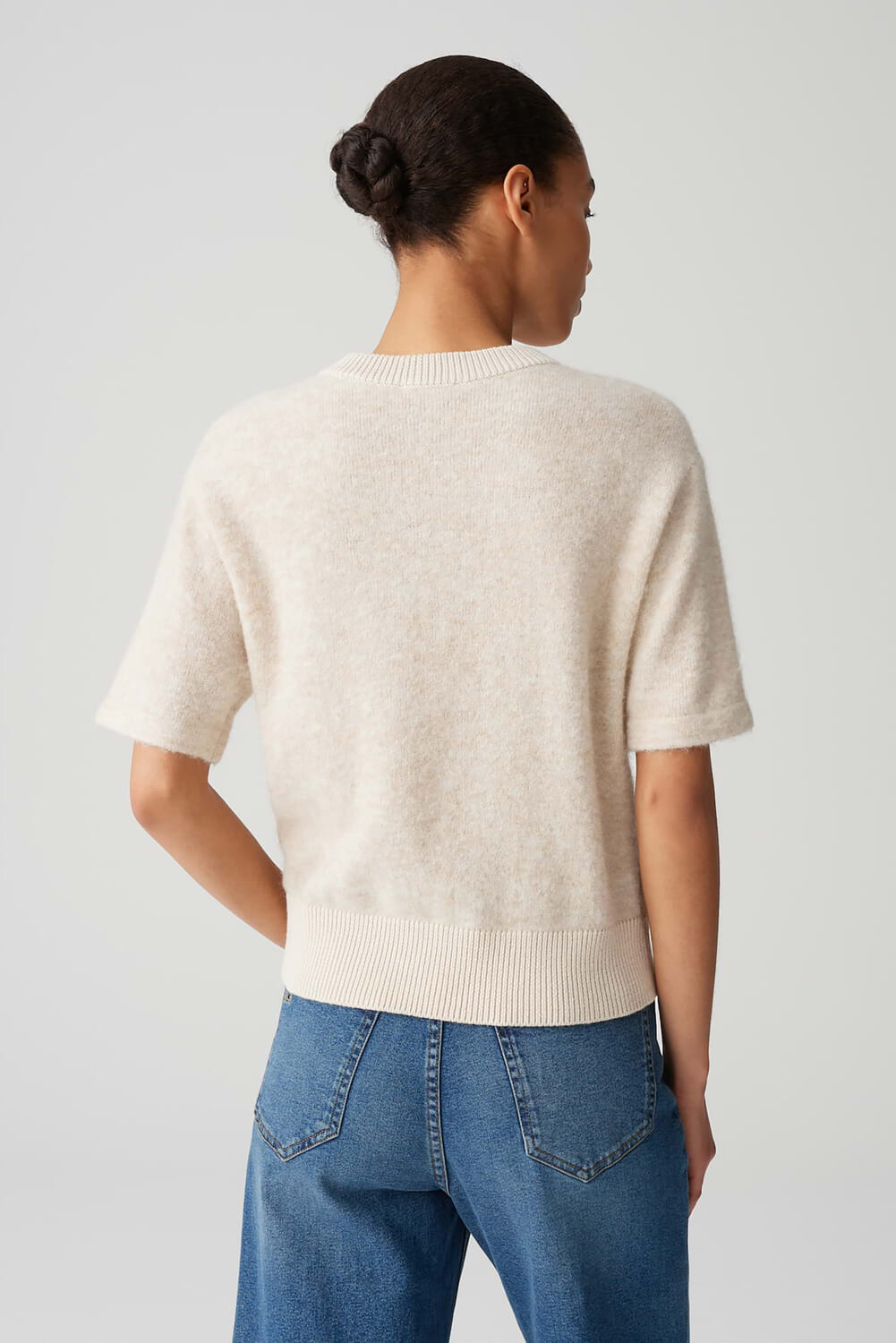 • Trui Pami met korte mouwen van pluizig garen Beige