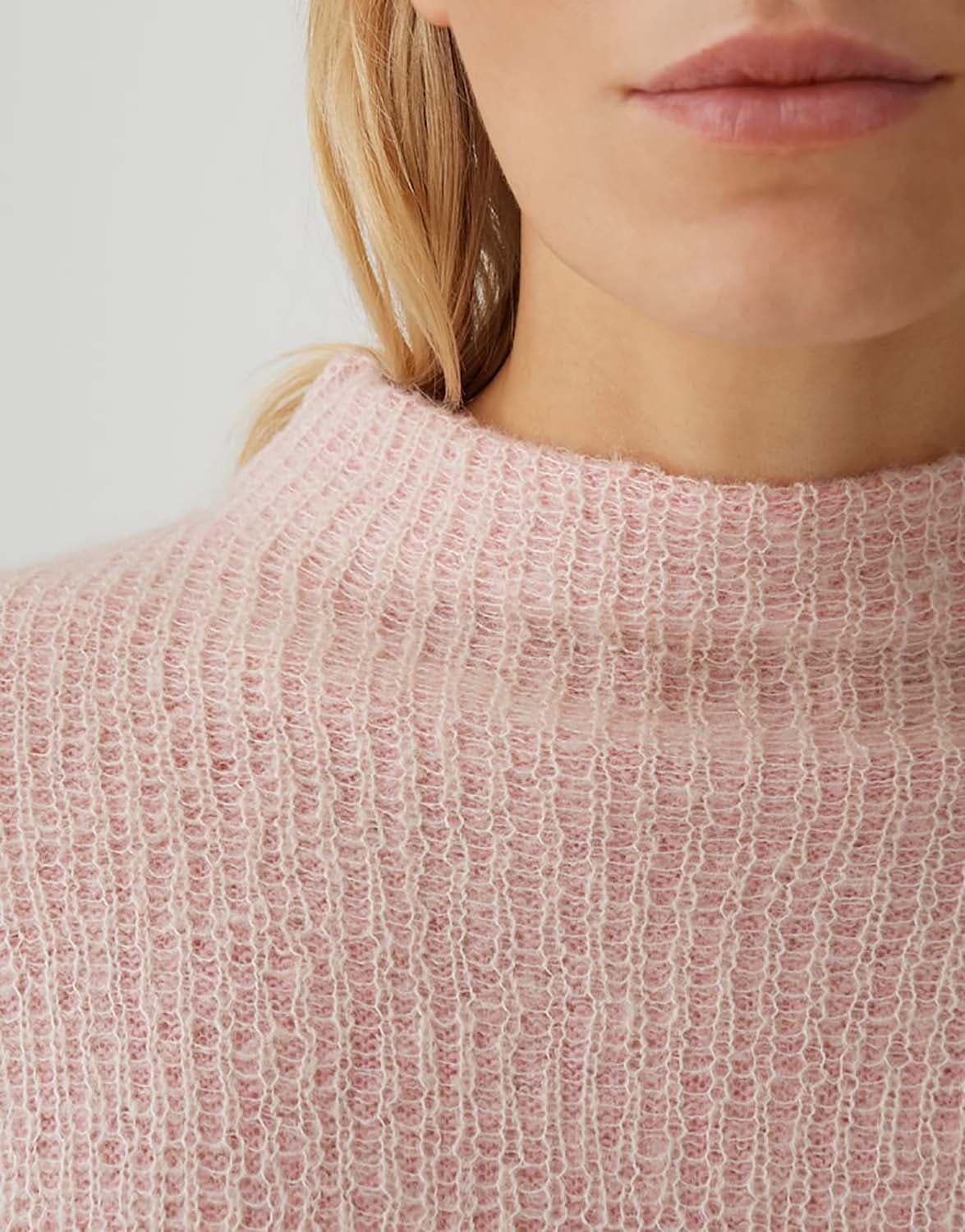 PRIEFE maakt indruk met zijn vederlichte breisel, pastelkleuren en zachte, luchtige silhouet. Het dubbelzijdige breisel met een delicate 3D-look maakt van deze trui een heel bijzonder it-piece in je garderobe.