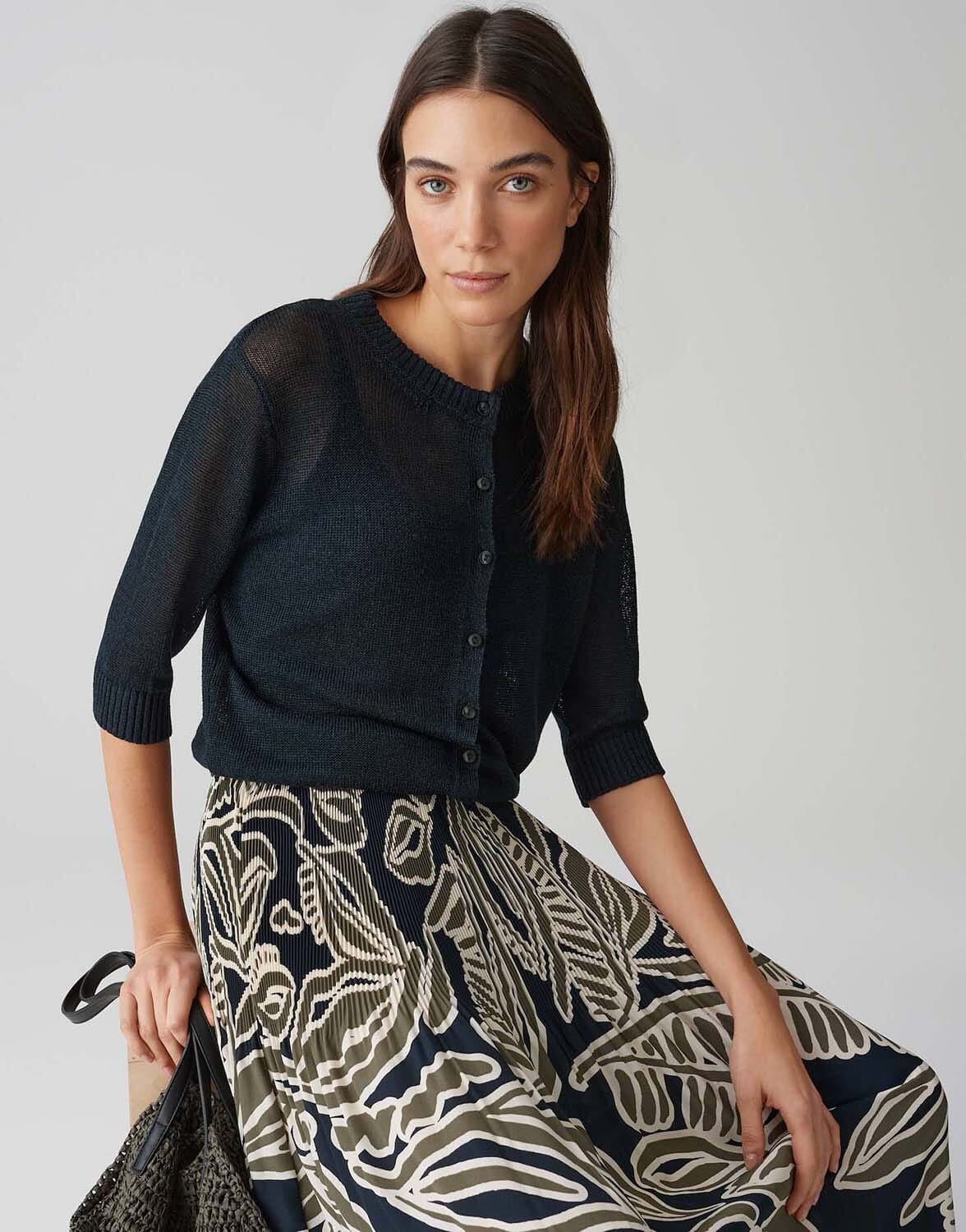 Vest Datina van Opus is een stijlvol dames vest met een casual uitstraling. Dit effen vest heeft een ronde halslijn en sluit met knopen. De pasvorm is regular en slimfit, terwijl de driekwart mouwen voor extra comfort zorgen. Ideaal voor elke garderobe.