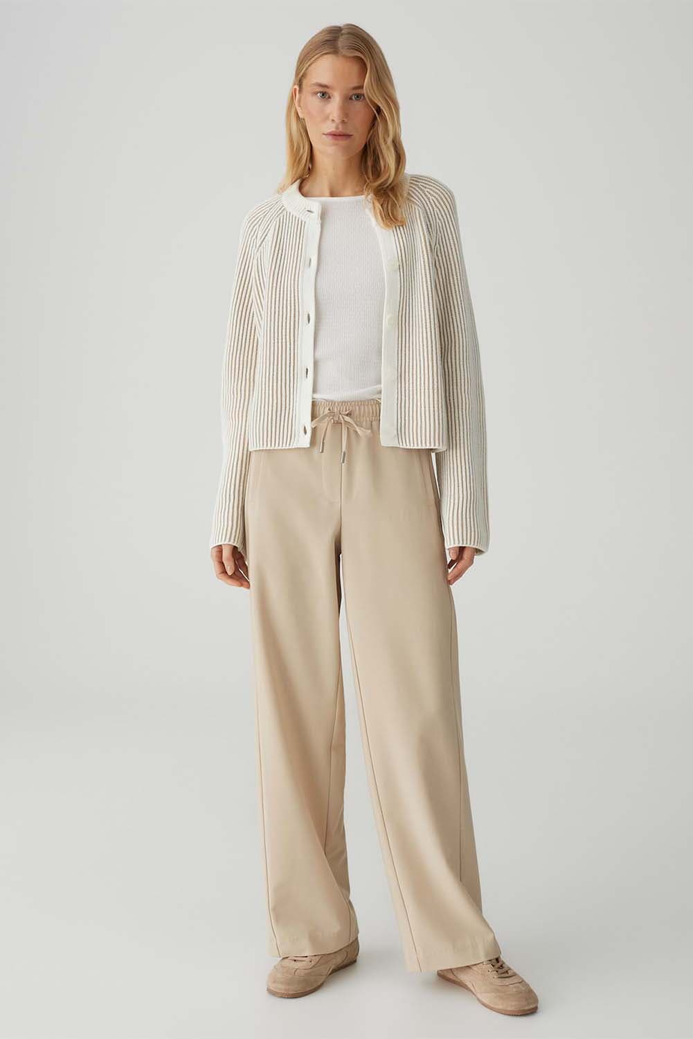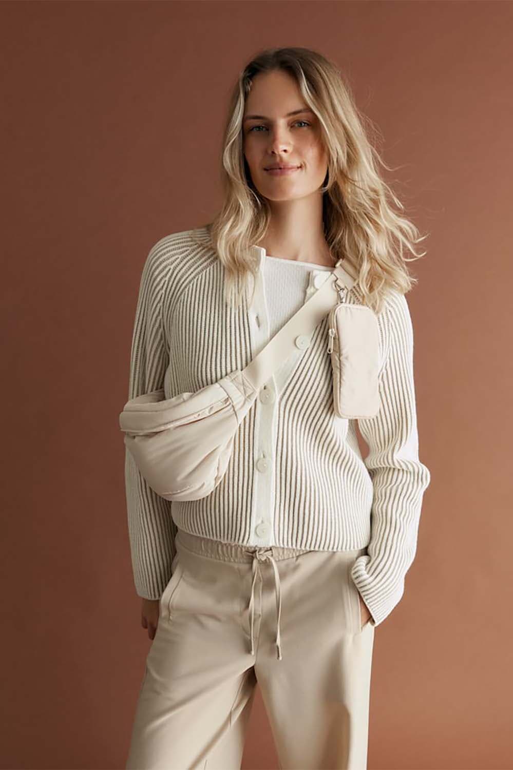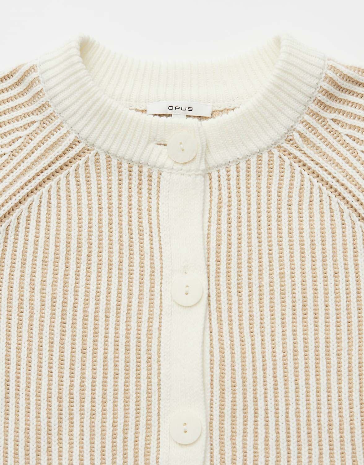 Vest Delsie van Opus is een casual dames vest met knopen en een ronde halslijn. Het heeft een cropped fit en een losse pasvorm, ideaal voor een comfortabele stijl. De lange mouwen en het streepjespatroon maken het een veelzijdige keuze voor elke dag.
