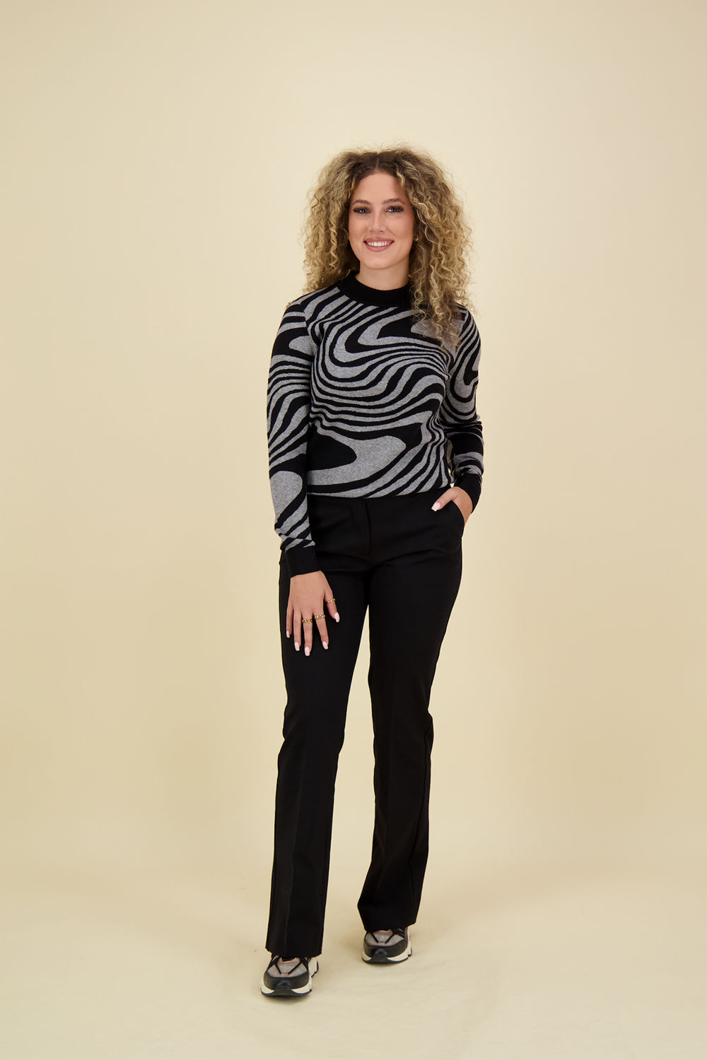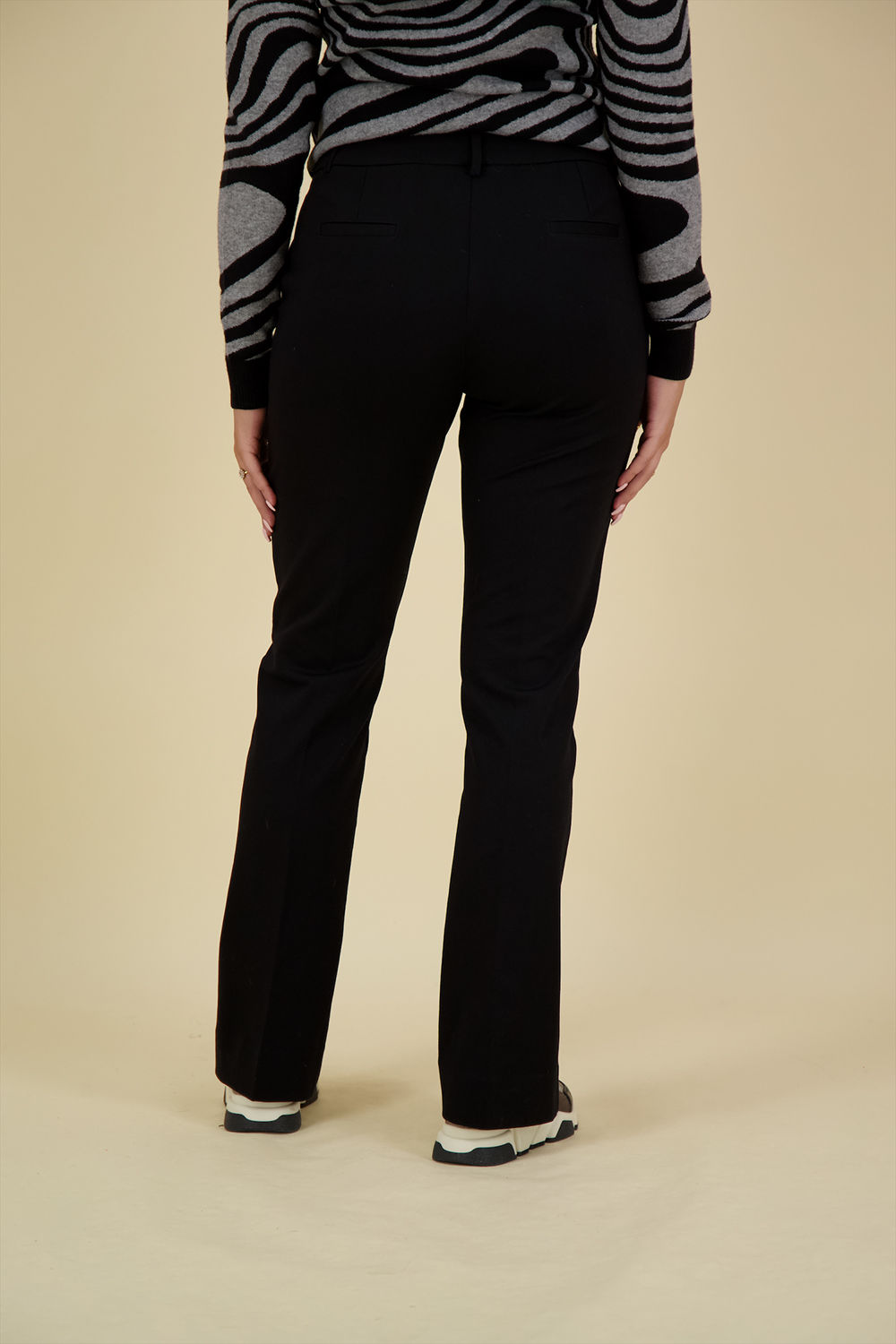 Noor City is een nieuw Para Mi model met een hoge elastische taille en een uitlopende broekspijp. Deze broek zit bij de bovenbenen iets wijder, vanaf de knie loopt de broekspijp uit. Het is een geklede pantalon die een mooie elegante uitstraling heeft. Met hakken maak je hem chic, met sneakers wordt hij meer casual. De brede omslag aan de onderzijde van de pijp maakt het mogelijk om deze broek iets langer te maken. Deze Noor van jersey stof is zowel classy als casual te dragen en valt soepel om het lichaam.