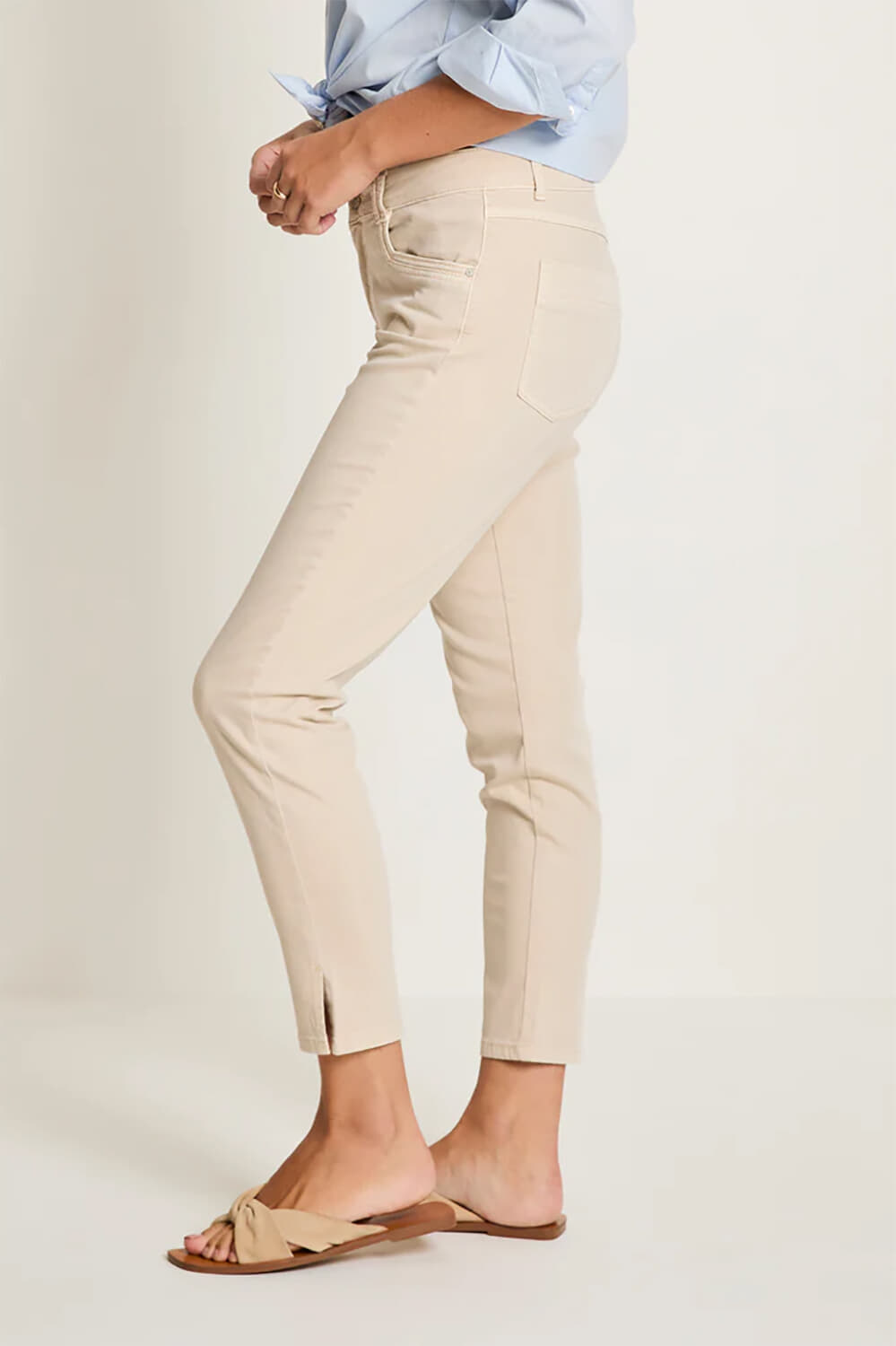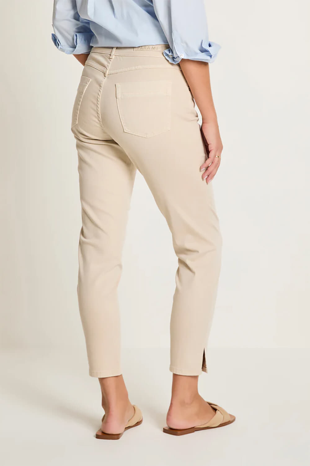 Capri Summerlight van Para Mi is een chino met slim leg en normale taille. Het effen ontwerp heeft voor- en achterzakken, riemlussen, een knoop- en ritssluiting en subtiele splitjes bij de zoom. Draag met een blouse en loafers voor een nette, casual outfit.