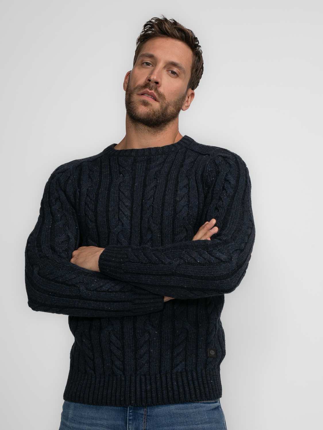 De Petrol Gebreide Kabel Trui Thorne is een stijlvolle trui met een gemêleerd design. Deze trui heeft een comfortabele ronde hals en is voorzien van een subtiel Petrol logo label, waardoor hij een tijdloze en veelzijdige aanvulling op je garderobe is.
