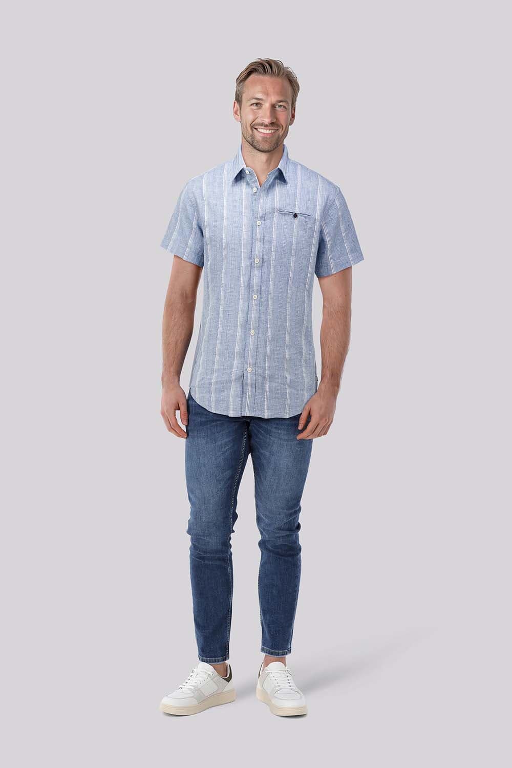 Overhemd van Petrol met casual strepen, spreidkraag en korte mouwen met omslag. De regular fit zit comfortabel, de knoopsluiting houdt het model netjes. Voorzien van een borstzak op de voorzijde. Combineer met een chino of jeans voor een ontspannen outfit.