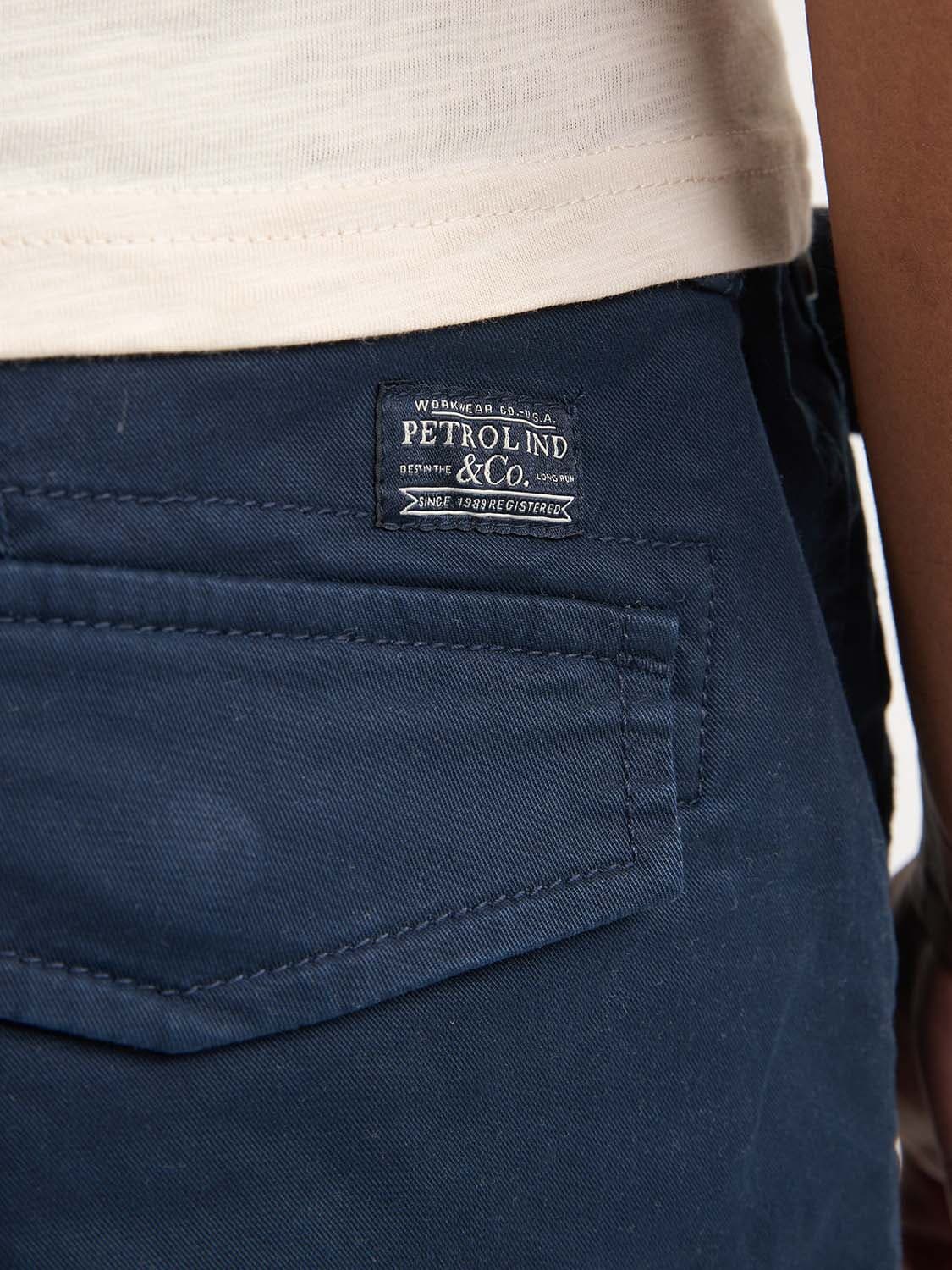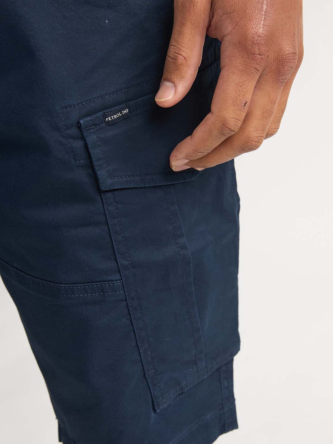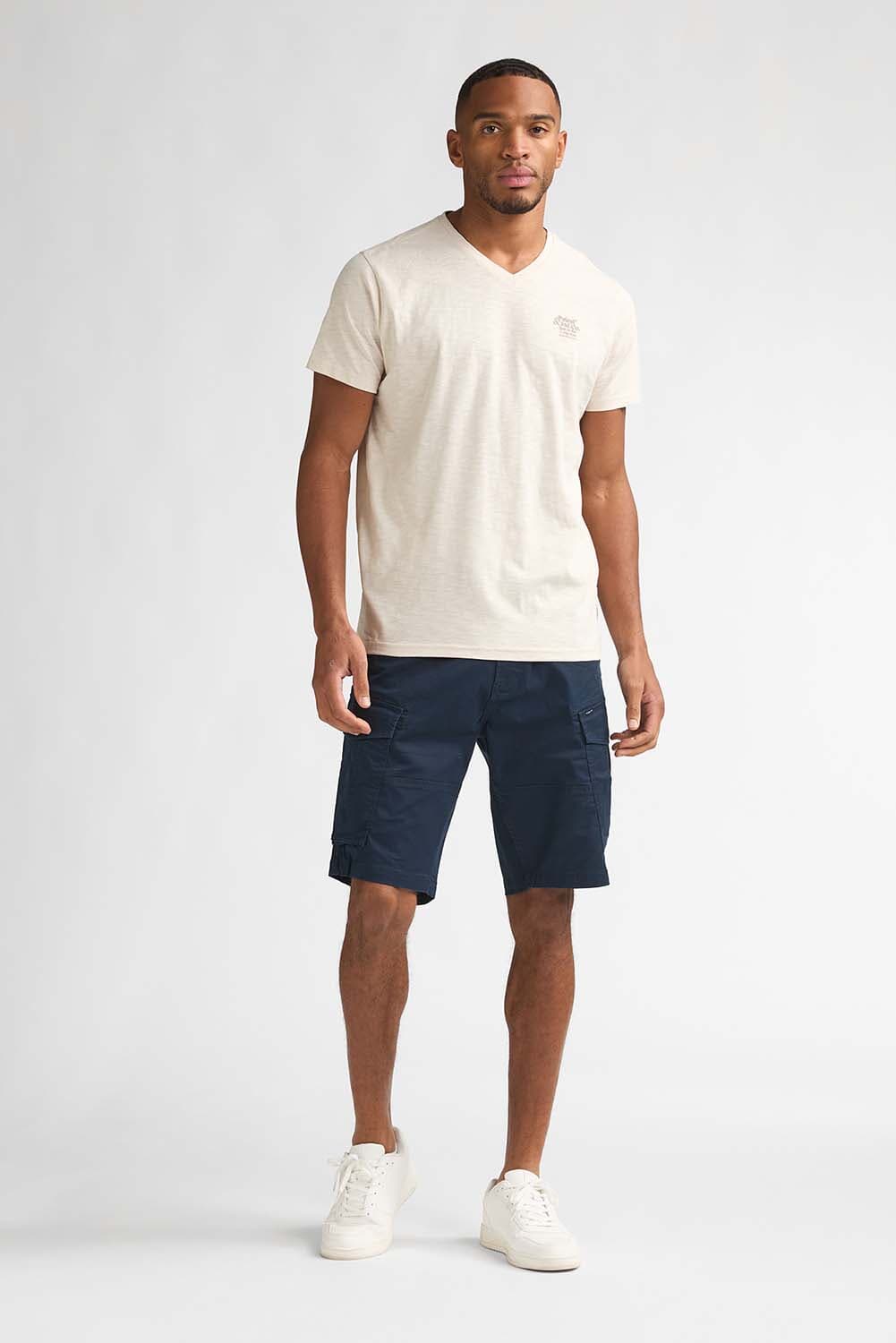 Short Cargo short van Petrol heeft een normale taille, een effen, sportieve uitstraling en een subtiel logolabel. De ritsluiting en meegeleverde riem zorgen voor een stevige pasvorm. Met cargo zakken, voor- en achterzakken neem je spullen praktisch mee. Combineer met een T-shirt en sneakers.