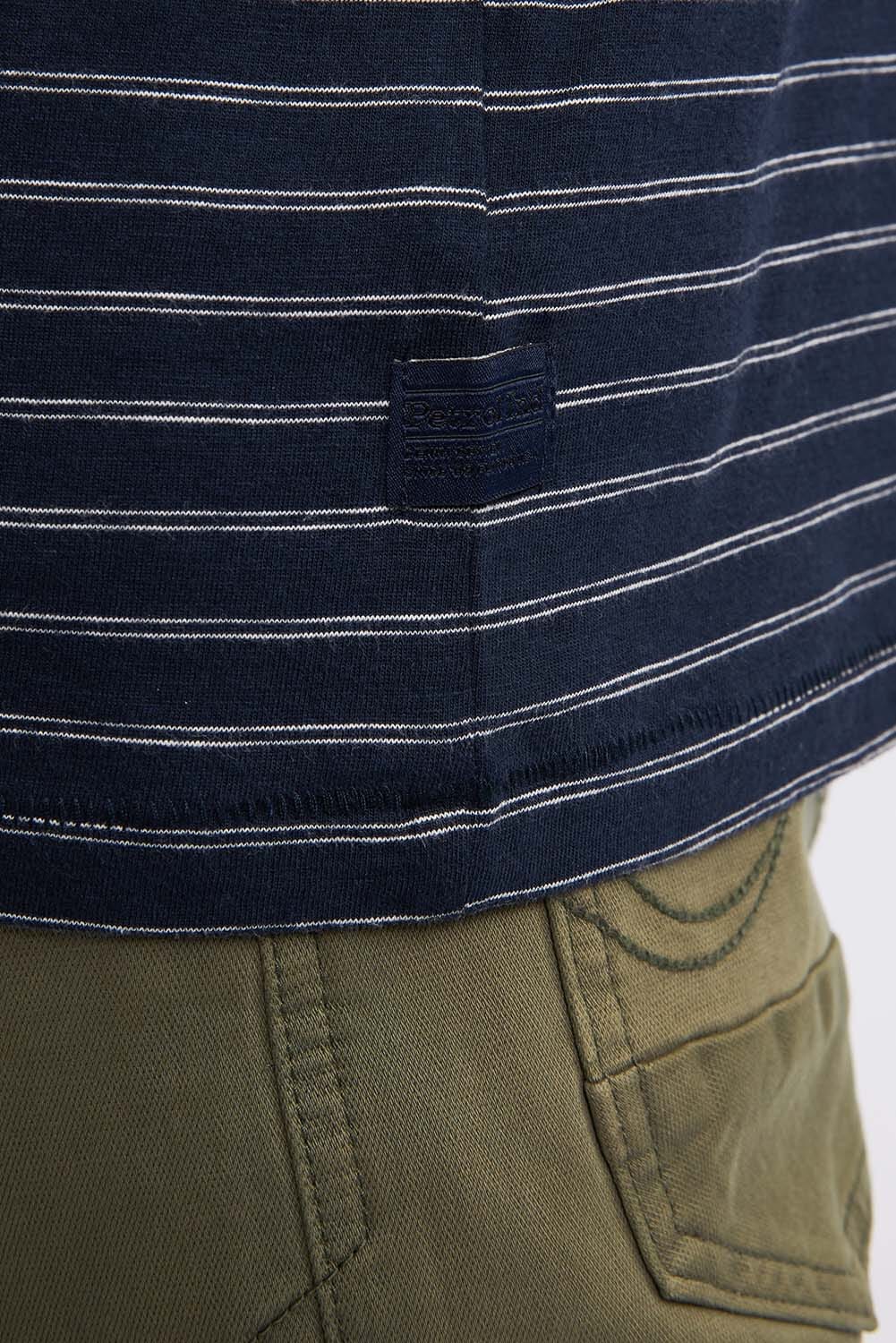 Het T-Shirt van Petrol is een casual heren t-shirt met een normale taille en opstaande kraag. Gemaakt van comfortabel katoen, heeft het een ronde hals en korte mouwen met streep patroon. Perfect voor de zomer en informele gelegenheden.