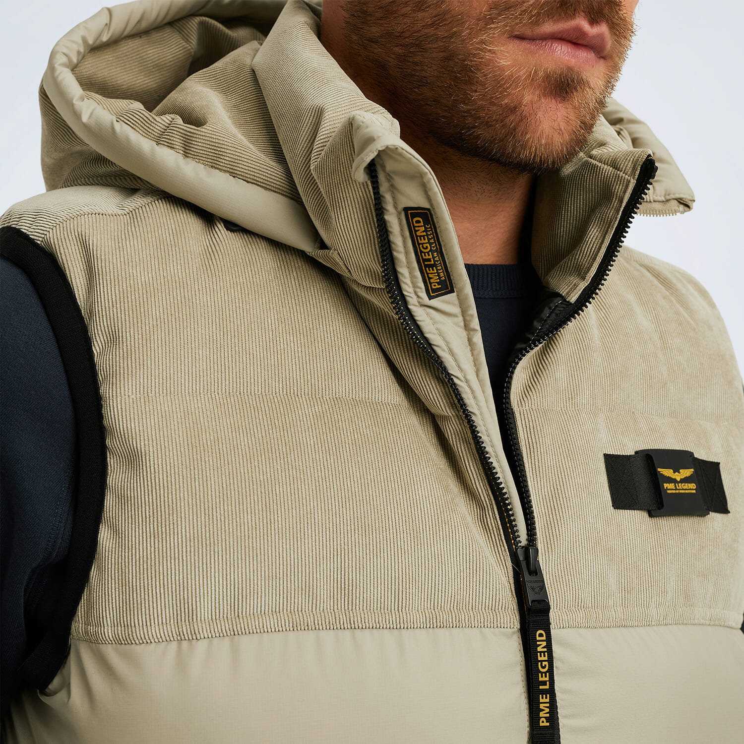 De Bodywarmer Gobbler van PME Legend is een casual heren bodywarmer met capuchon en opstaande kraag. Voorzien van voorzakken en een dubbele rits, biedt deze bodywarmer een comfortabele, regelmatige pasvorm. Het effen ontwerp maakt het een veelzijdige aanvulling op elke garderobe.