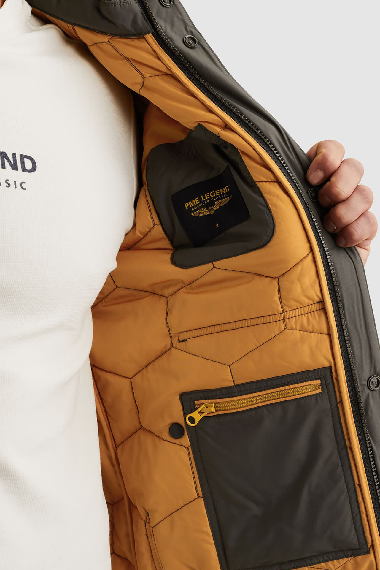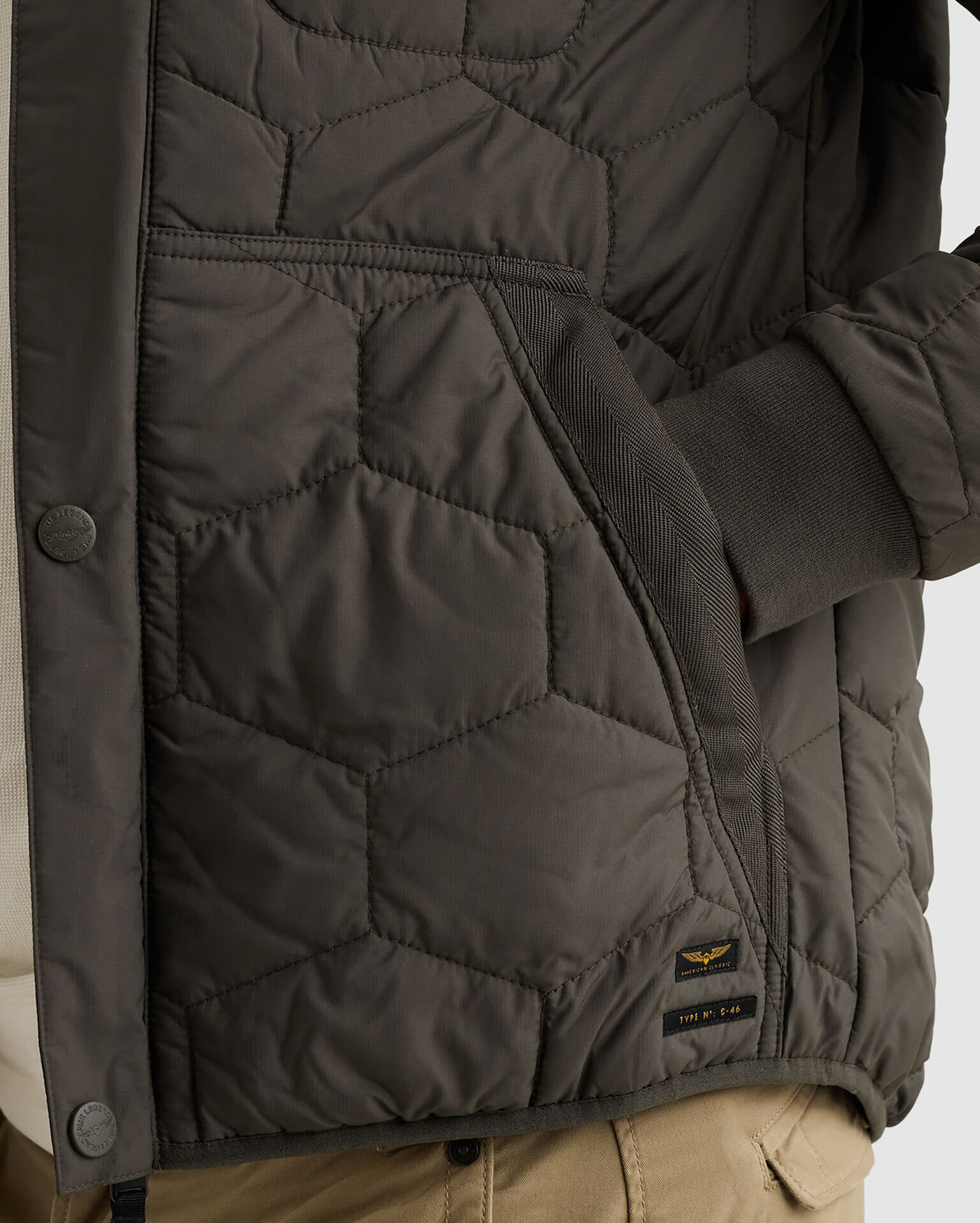 De Bomberjack Flyglicer Lire rip van PME Legend is een heren bomberjacket met een casual stijl en opstaande kraag. Uitgerust met zakken op de voorzijde, ribgebreide mouwboorden en een sluiting met drukknopen en rits, biedt dit gewatteerde jack comfort en stijl.