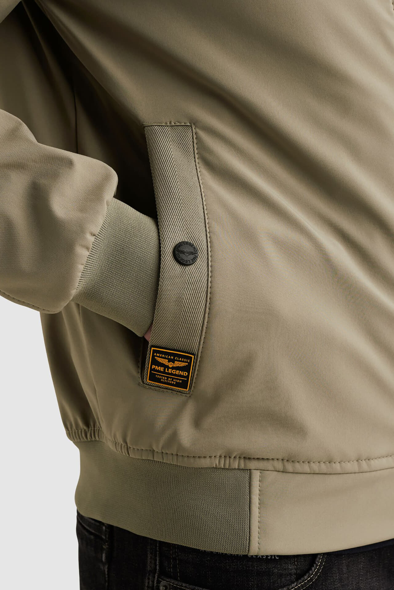De Flight Jack Skyglider Winddicht van PME Legend is een heren bomberjack met een casual stijl en opstaande kraag. Het softshell jack heeft zakken op de voorzijde, ribgebreide mouwboorden en een rits als sluiting. De halve col en regular fit maken het compleet.