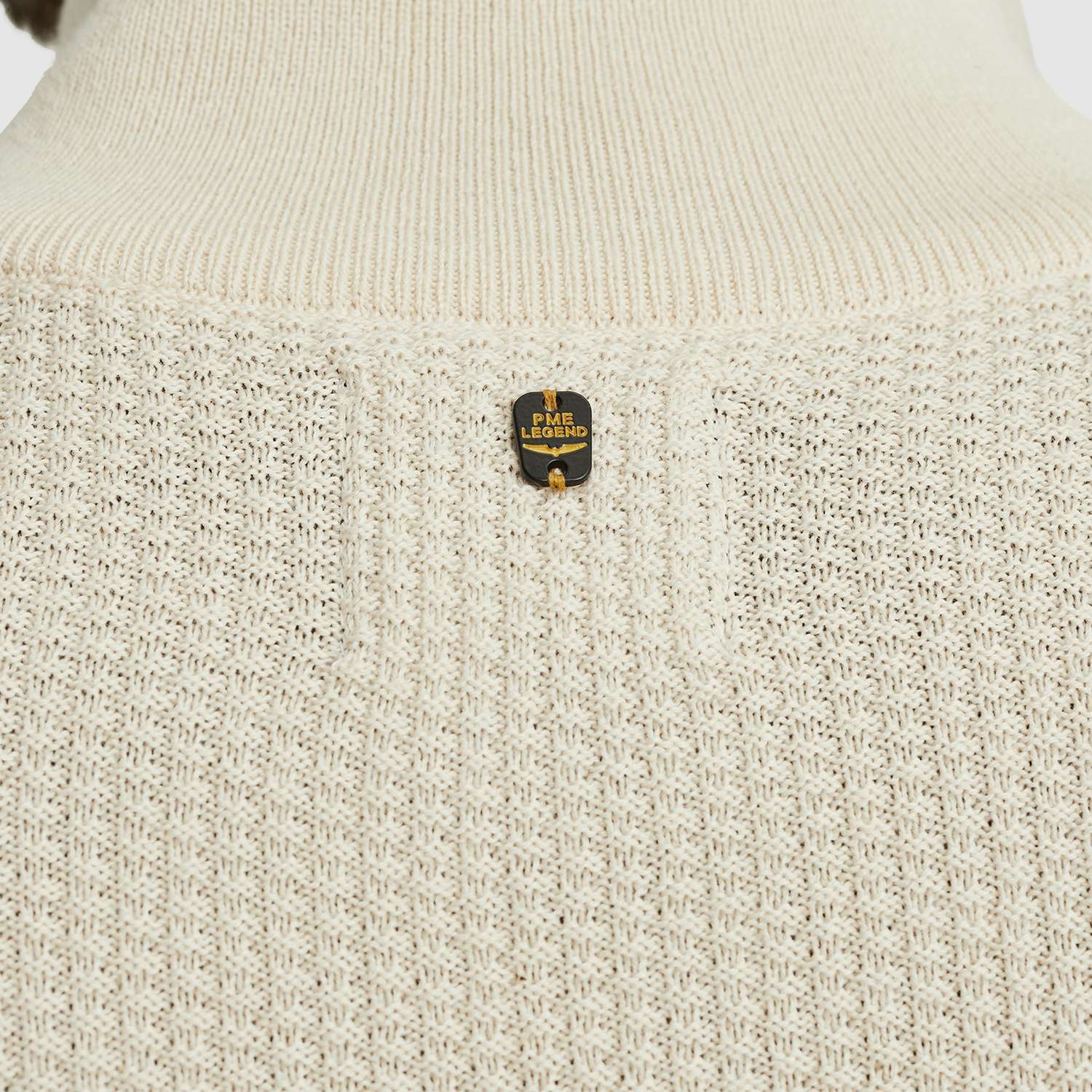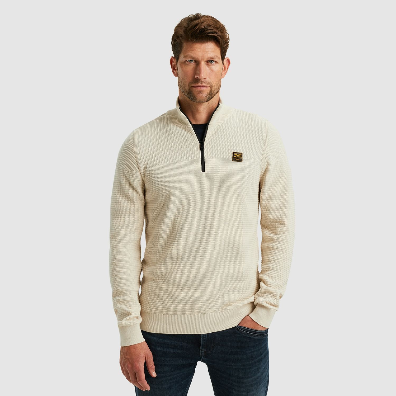 De PME Legend trui met opstaande kraag en halve rits is een perfecte aanvulling op je kledingkast. Gemaakt van zacht katoen mouliné, benadrukt de mix van structuren de cargo look. De ribgebreide mouwboorden en de kenmerkende PME Legend details maken het geheel af. Combineer deze veelzijdige trui met een jeans of cargobroek voor een stoere uitstraling.