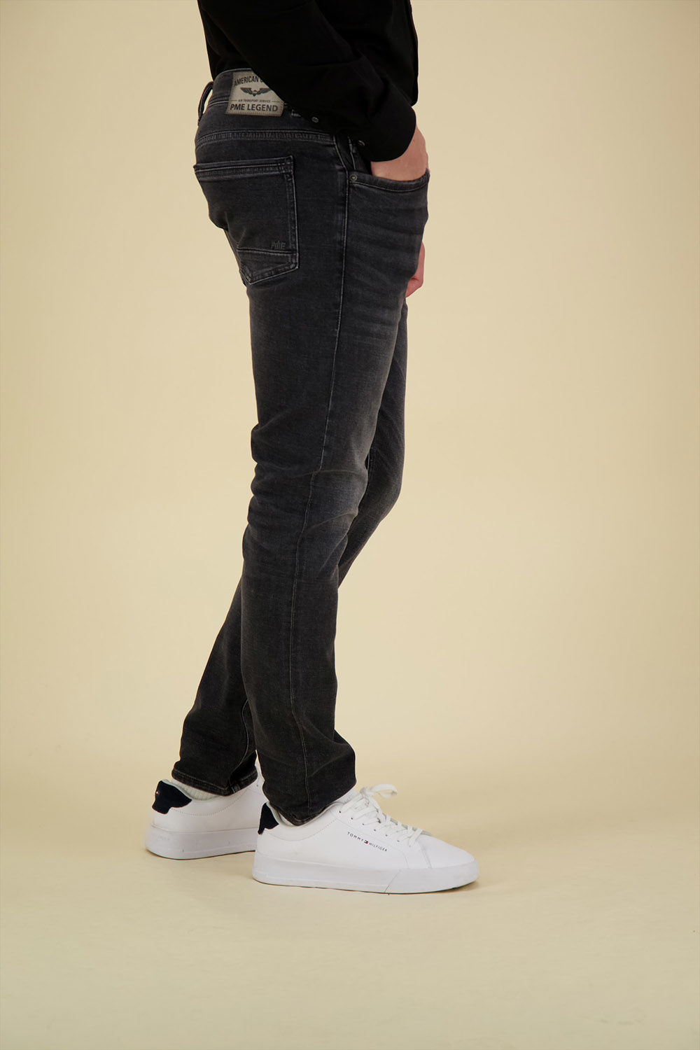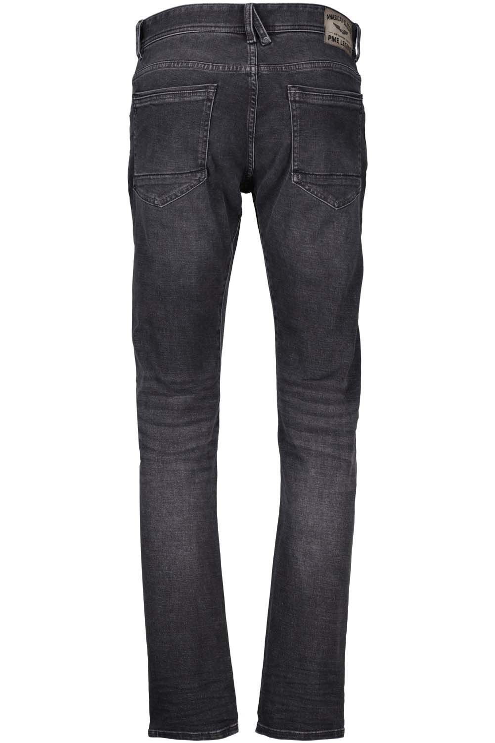 De PME Legend Tailwheel jeans is een gedetailleerde slim fit jeans met een smalle pijp. De mix van katoen en elastaan geeft de spijkerbroek een zacht en comfortabel gevoel. De zachte left hand structuur zorgt voor extra draagcomfort. Deze PME legend spijkerbroek heeft een subtiele, donkerblauwe wassing en mooie whiskers op de bovenbenen. Beide voorzakken worden verstevigd met een kenmerkend stuk jeans. De PME Legend borduursels op de coin pocket en de rechter achterzak maken het design af.