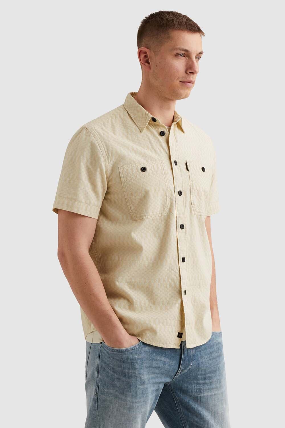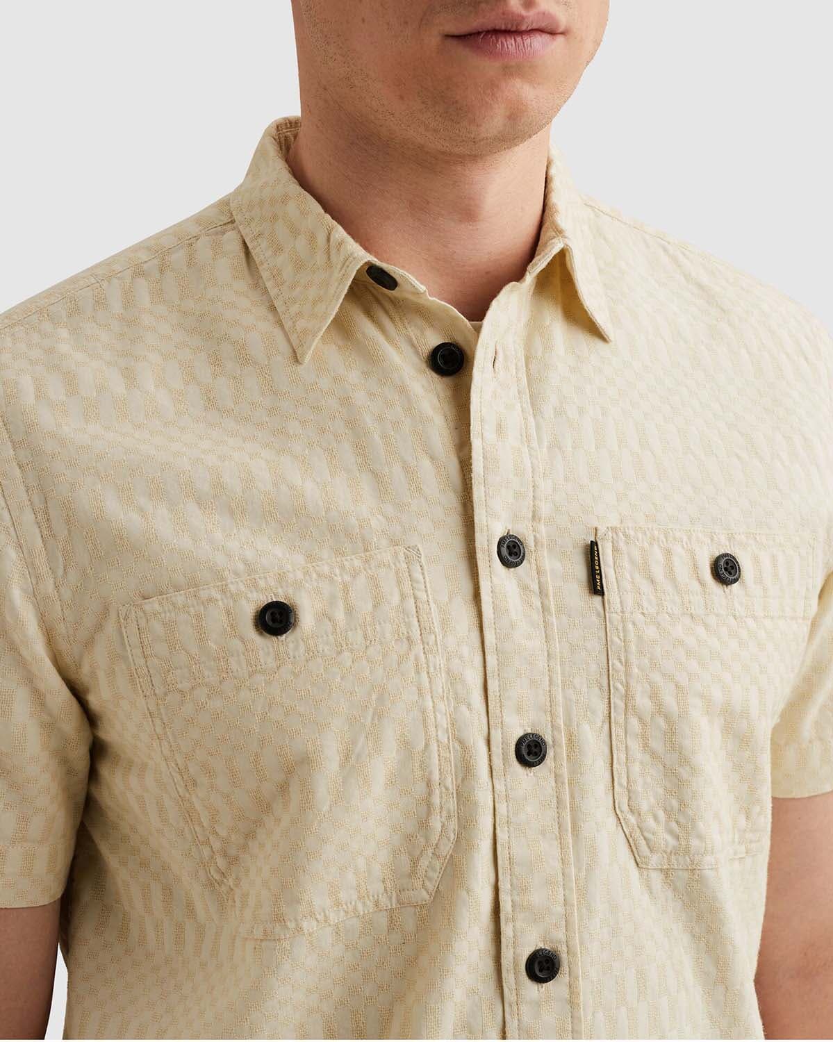 Overhemd van PME Legend met casual uitstraling en grafisch structuurpatroon. De spreidkraag met kentkraag, knoopsluiting en korte mouwen zorgen voor een relaxte fit. Voorzien van twee borstzakken, manchetten zonder knopen en een subtiel merkdetail bij de kraag. Combineer met denim.