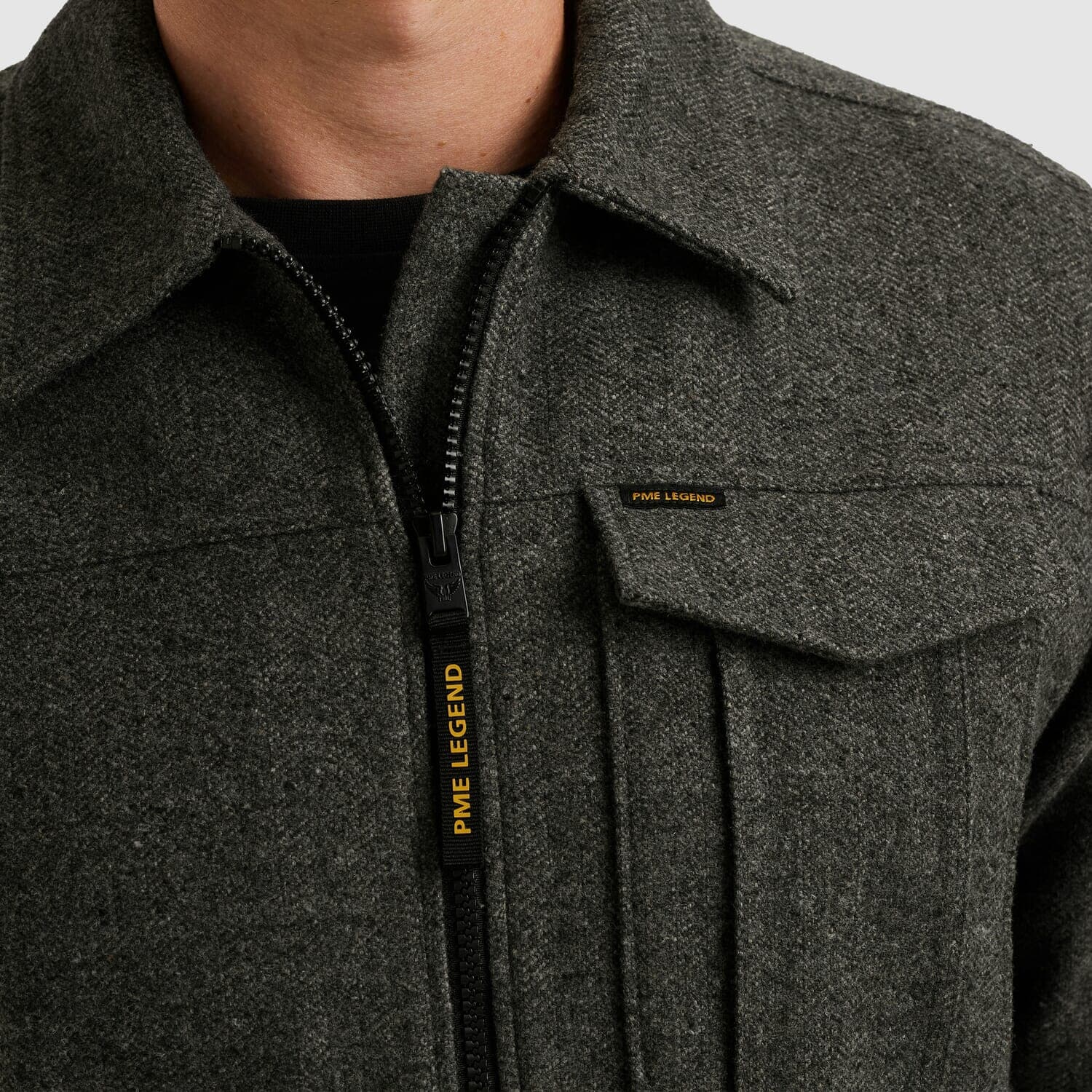 De Overshirt Woolblend Herringbow van PME Legend is een stijlvol heren overshirt met een casual uitstraling. Uitgerust met een button down kraag, lange mouwen en een praktische rits, biedt het gemak en comfort. Voorzien van zakken op de voorzijde, is het effen patroon tijdloos.