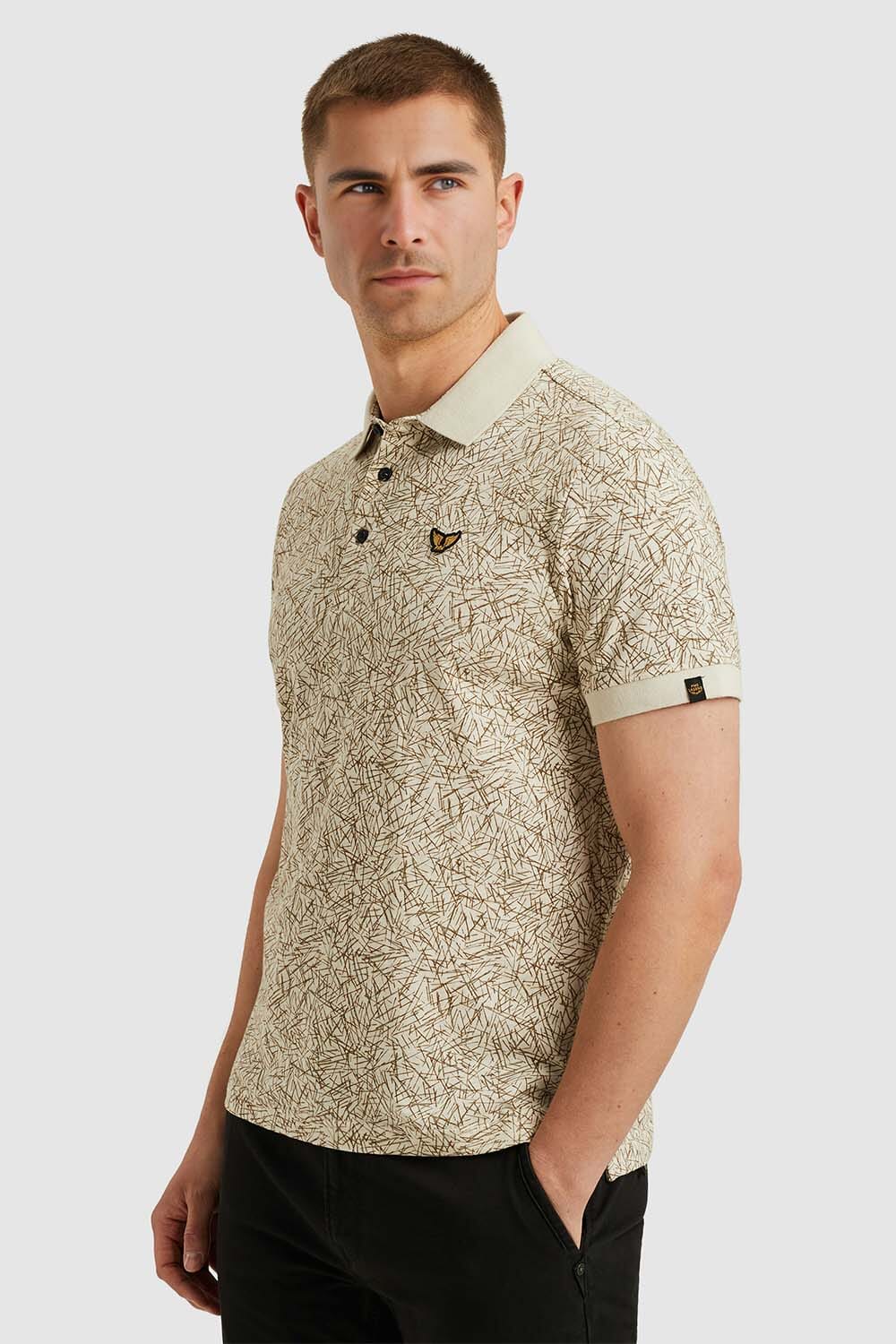 De polo van PME Legend is een heren polo met een all-over patroon en een opstaande kraag. De korte mouwen hebben manchetten zonder knopen, terwijl de sluiting met knopen is uitgevoerd. De regular fit maakt deze polo ideaal voor casual gelegenheden.
