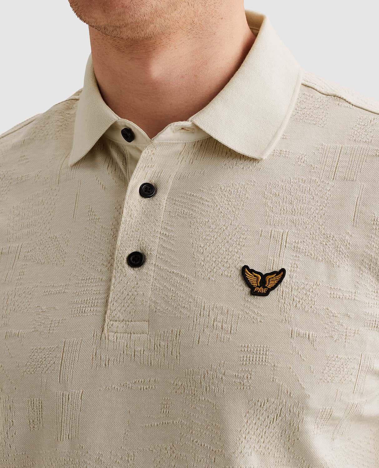 Polo van PME Legend, polo met casual uitstraling. De regular fit zit comfortabel en valt recht. Voorzien van polokraag, korte mouwen en knoopsluiting. Effen basis met subtiel all-over reliëfpatroon, aangevuld met logo op de borst en een klein label in de nek. Combineer met een chino.