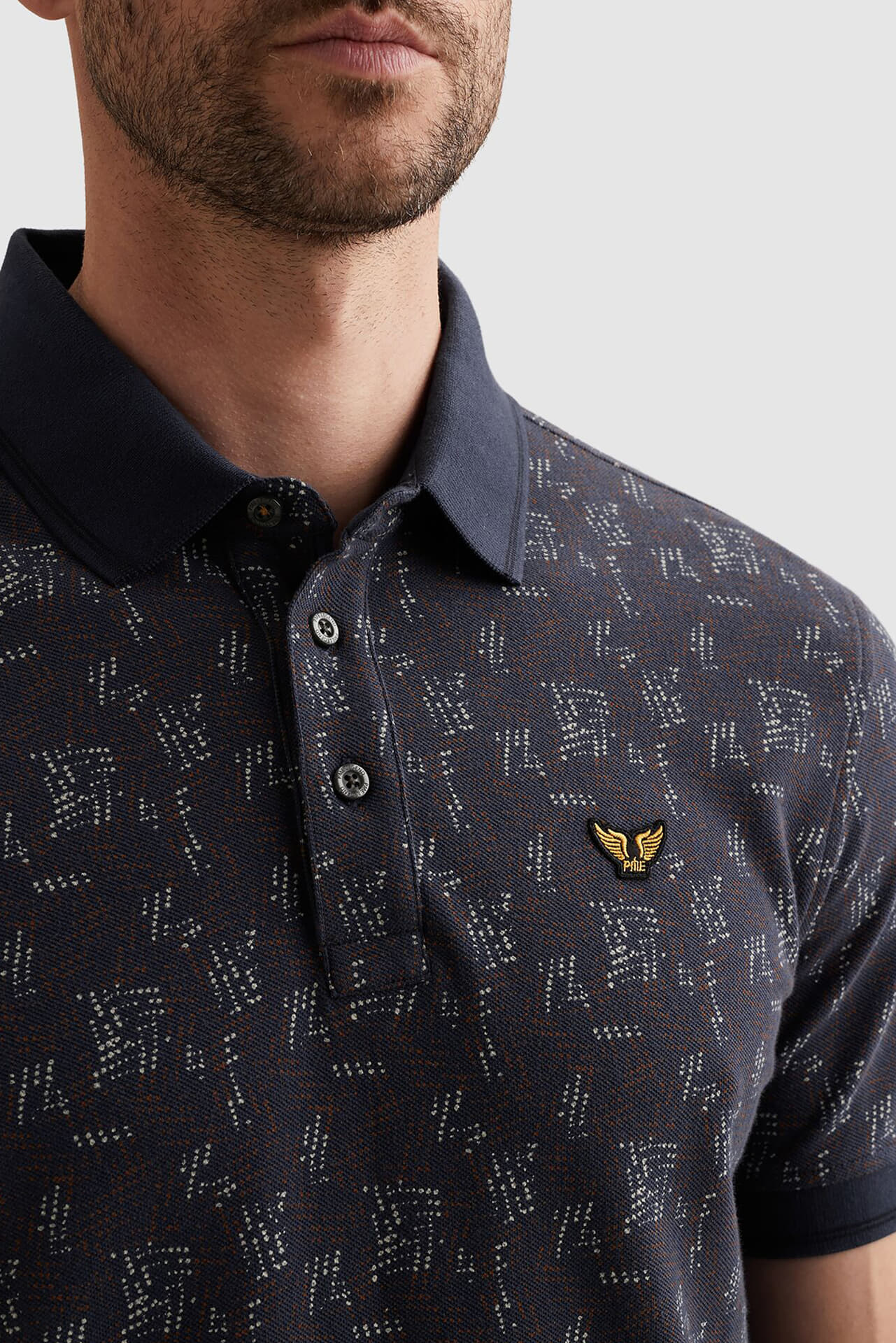 De Polo Fine Pique all over print van PME Legend is een casual heren polo met een opstaande kraag en ribgebreide mouwboorden. Voorzien van een polokraag met knopen, biedt deze regular fit polo met korte mouwen en logo-patroon een comfortabele en stijlvolle uitstraling.