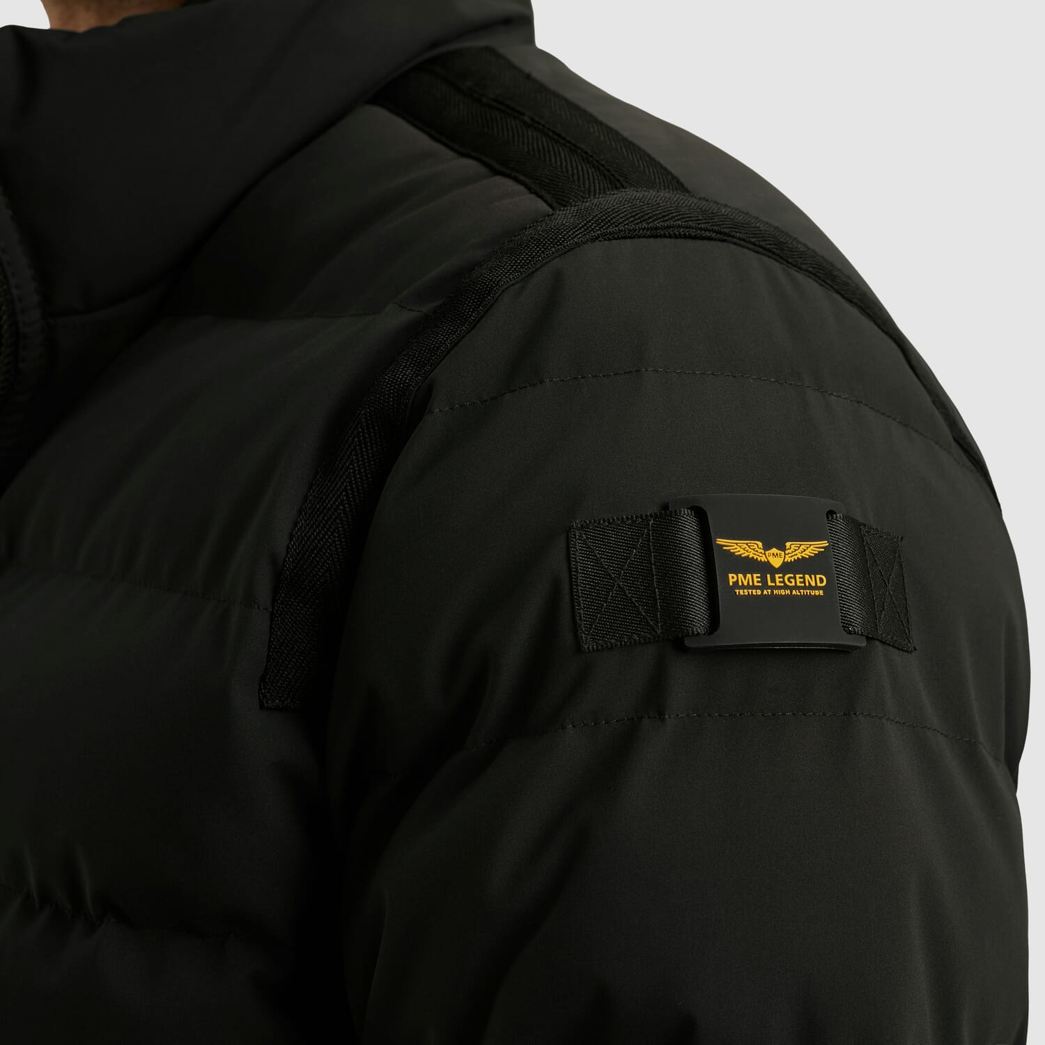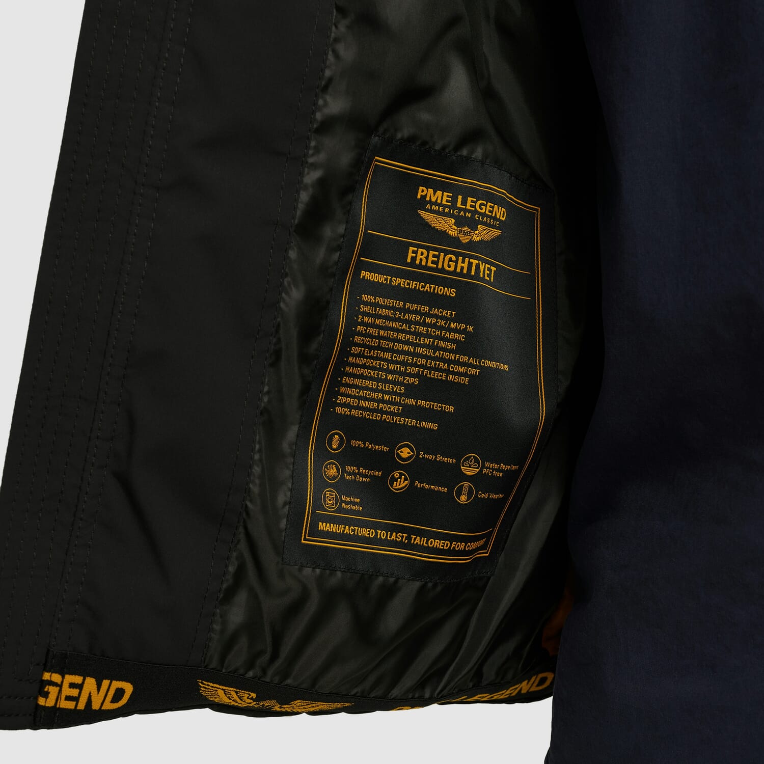 De PME Legend Freightyet jas is een lichtgewicht, waterafstotende pufferjas. De comfort stretch en Tech Down vulling zorgen voor veel draagcomfort. De elastische heupboord en cuffs houden de kou buiten. De jas is voorzien van twee ruime zijzakken met fleece voering en een rits en een binnenzak met rits. De authentieke flight tapes op de schouders en bij de armsgaten zorgen voor de stoere PME Legend look.