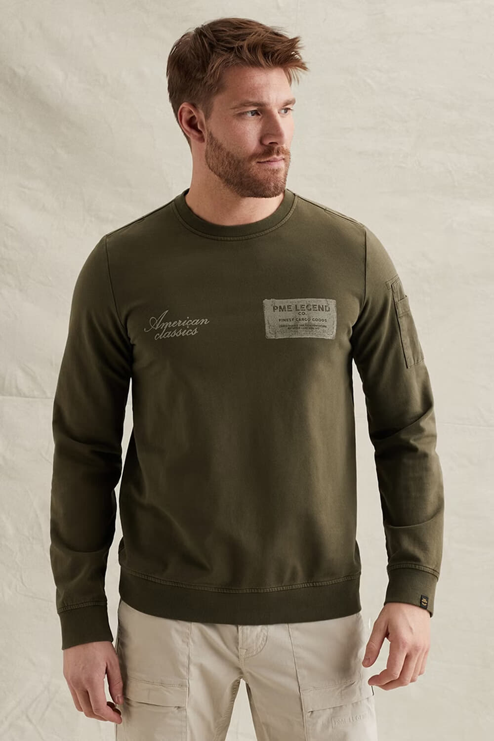 Het Sweatshirt met artworks en flight pocket van PME Legend biedt een casual stijl met een ribgebreid mouwboord en een ronde hals. De effen patroon en regular pasvorm maken dit item perfect voor dagelijks gebruik, en het is ideaal voor heren truien liefhebbers.