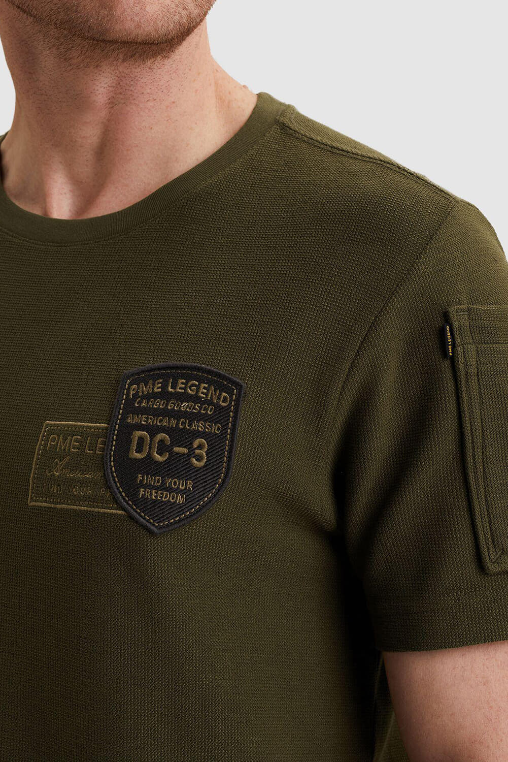 Het T-shirt met Artwork en flight pocket van PME Legend is een casual heren t-shirt met een ronde halslijn en korte mouwen. Het opvallende logo-patroon en de opstaande kraag maken het stijlvol en uniek. Ideaal voor een ontspannen, modieuze uitstraling.