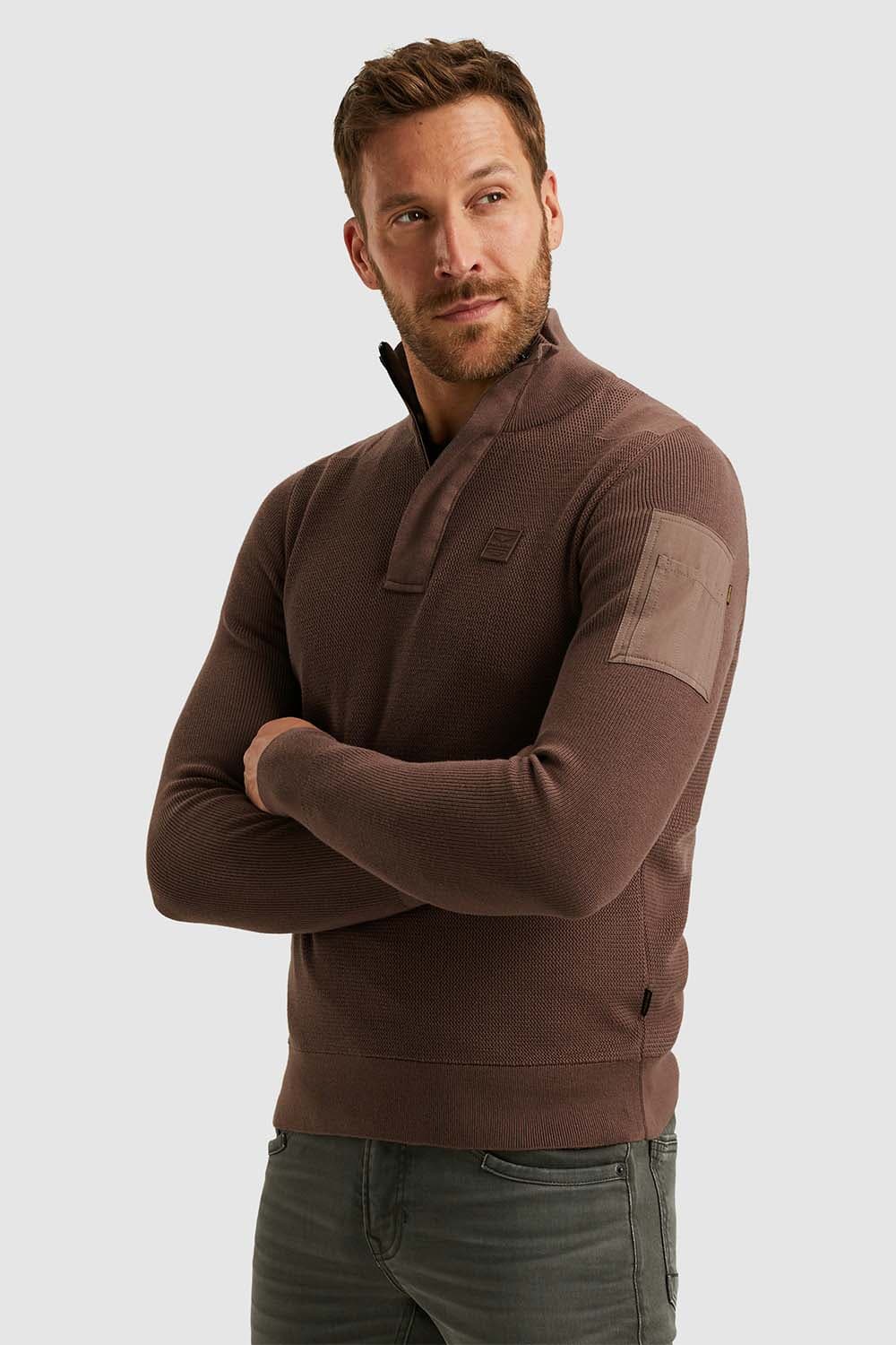 De trui van PME Legend is een stijlvolle toevoeging aan de heren truien collectie. Met een opstaande kraag, rits en slimfit pasvorm biedt deze trui een comfortabele casual look. De lange mouwen en het unieke elleboogdetail maken het geheel compleet en tijdloos.