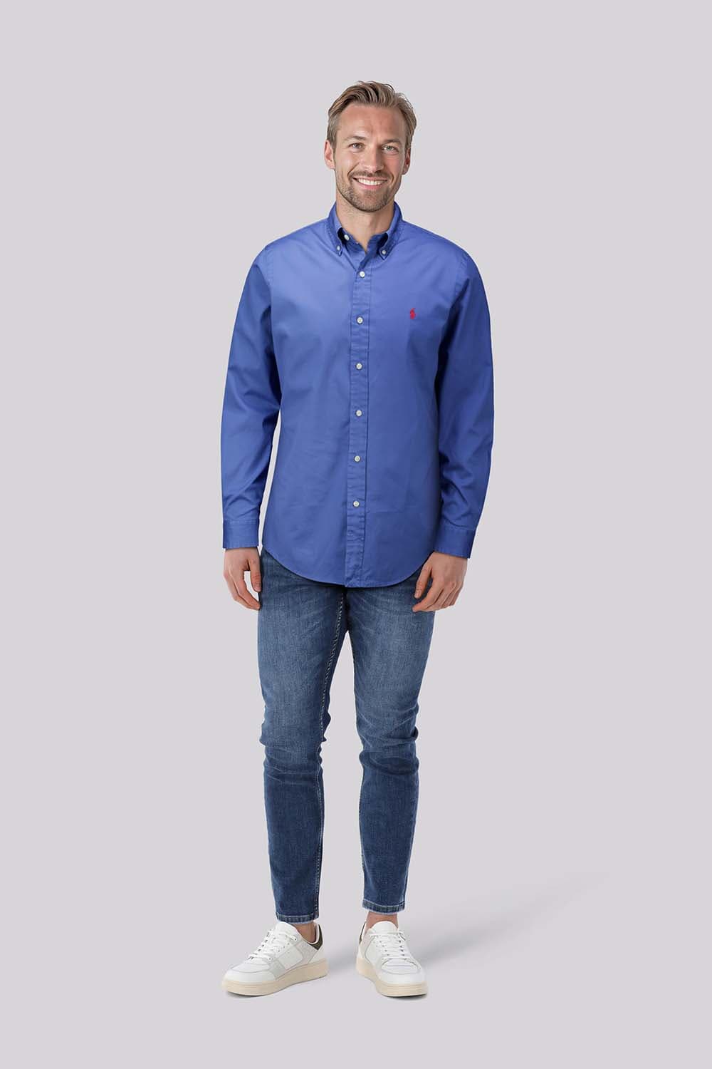 Overhemd Twill Regular Fit van Polo Ralph Lauren is een effen overhemd met subtiel logoborduursel, button down kraag en knoopsluiting. De lange mouwen hebben manchetten met knopen. Geschikt voor casual en nette momenten. Combineer met een chino of onder een colbert.