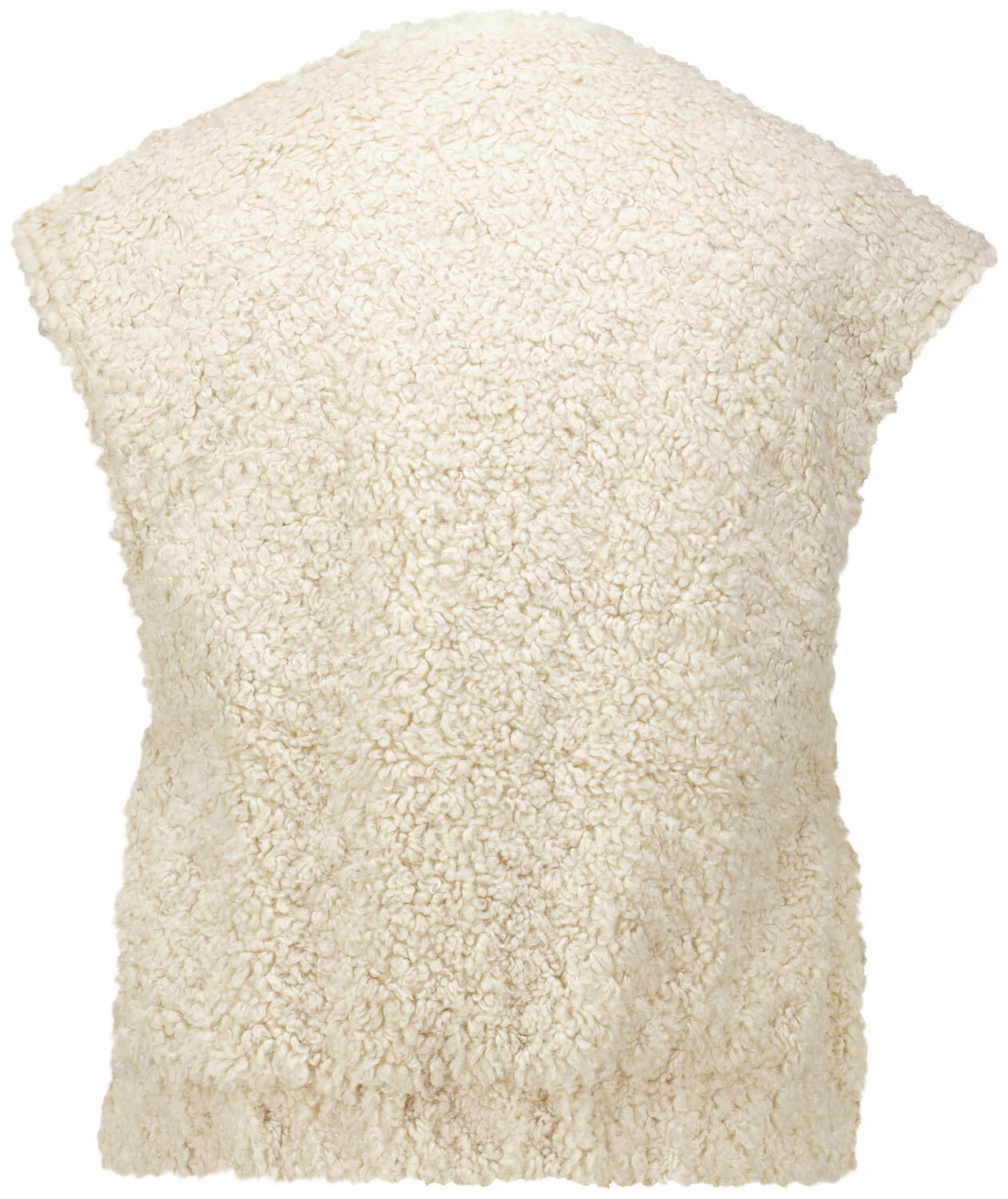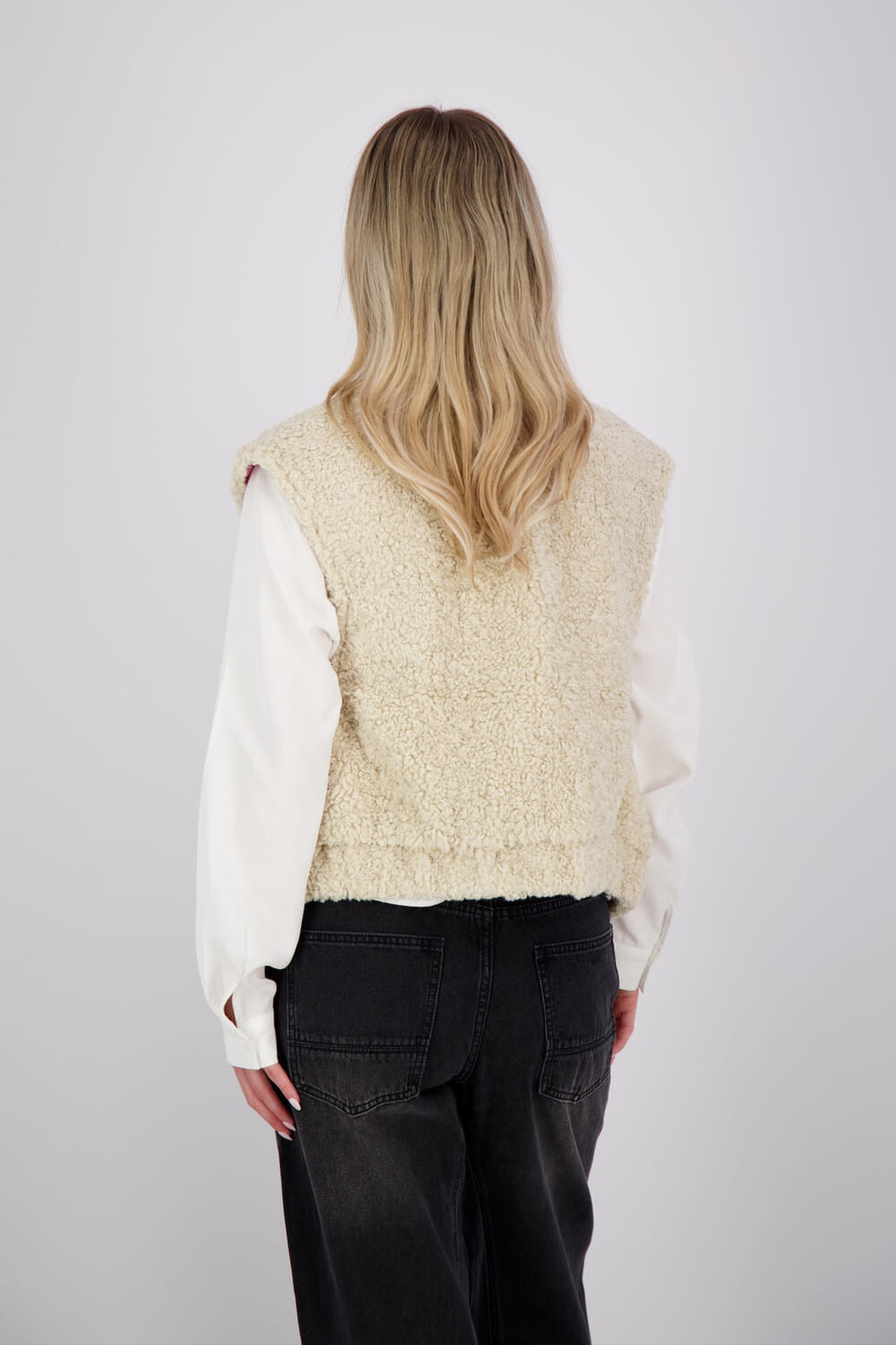 Gilet Teddy Baseball van Pom Amsterdam is een stijlvol dames gilet met een opstaande kraag, boxy fit en effen patroon. Het is mouwloos en heeft een aanschuifsluiting, perfect voor een casual gelegenheid. De zachte teddy stof biedt comfort en een modieus tintje.