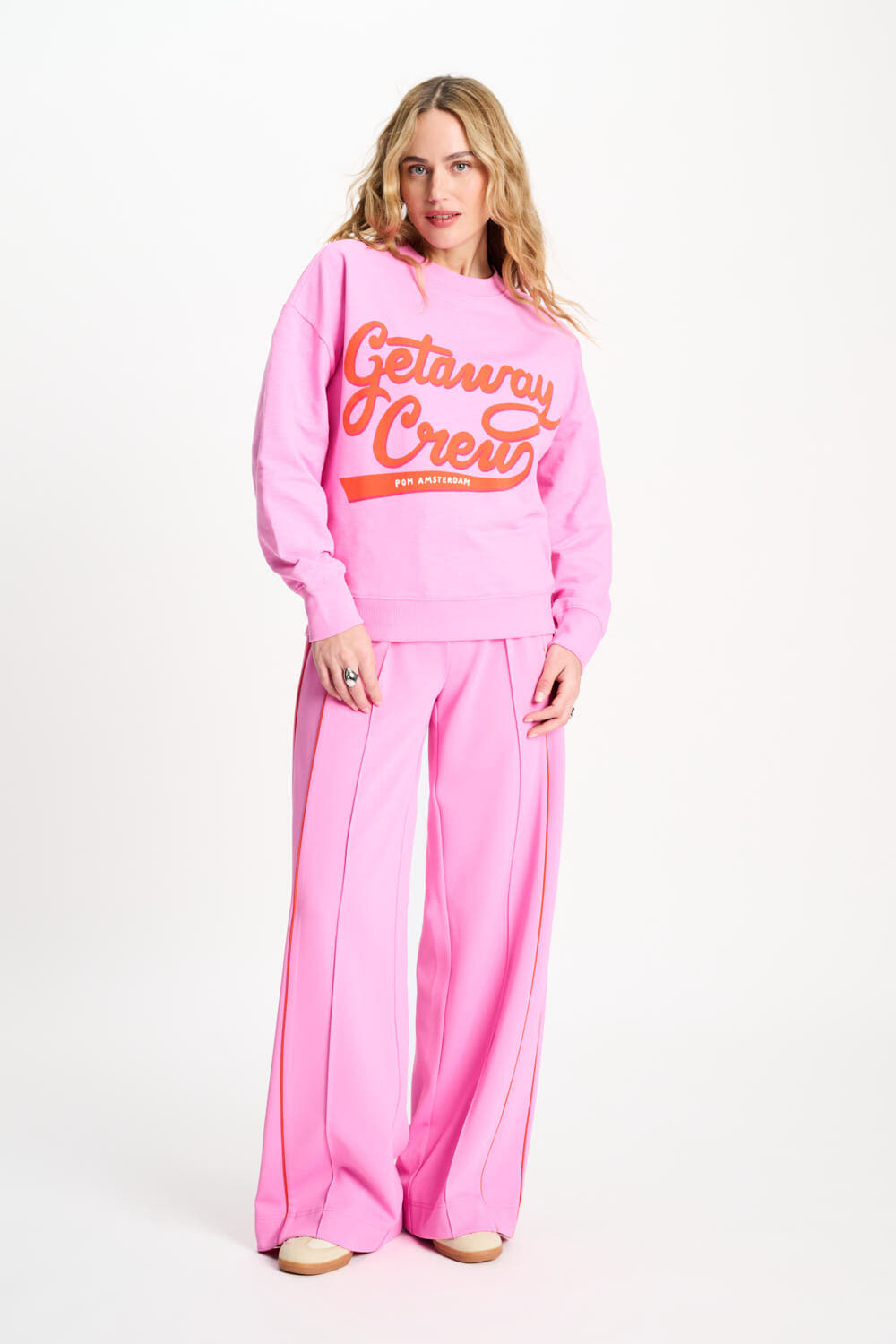 De Sweater Getaway Crew van Pom Amsterdam is een casual dames sweater met een regular fit en lange mouwen. Voorzien van een opvallend logo en ribgebreide mouwboorden, biedt deze sweater comfort en stijl voor informele gelegenheden. Ideaal voor een ontspannen dag.