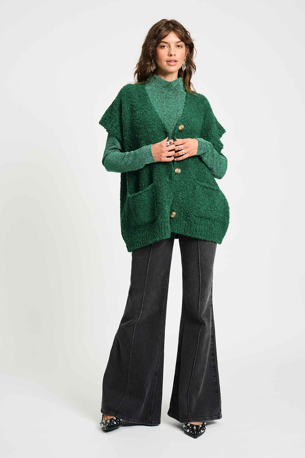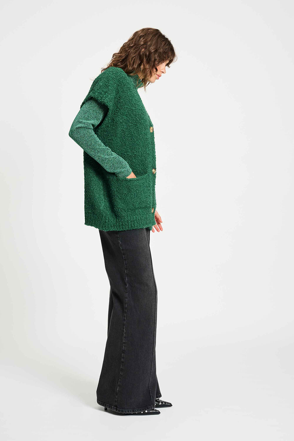 Het vest van Pom Amsterdam combineert casual en verfijnde stijl. Met voorzakken, een knoopsluiting en een V-hals biedt dit mouwloze vest een losse pasvorm in een effen patroon. Een uniek kledingstuk dat comfort en elegantie samenbrengt voor elke gelegenheid.