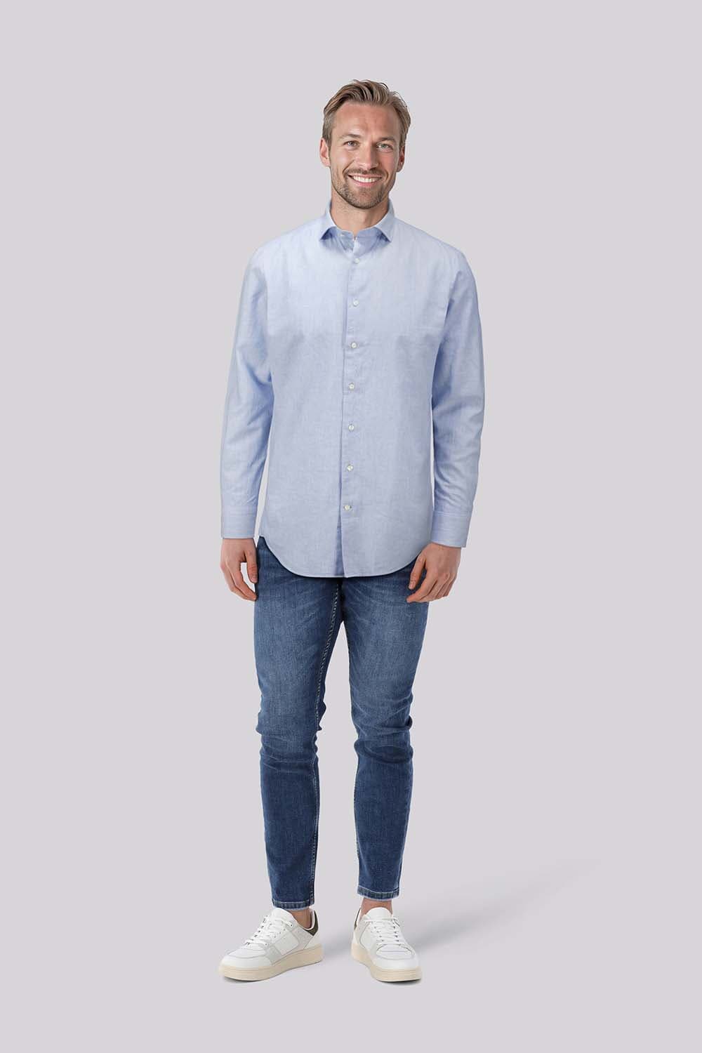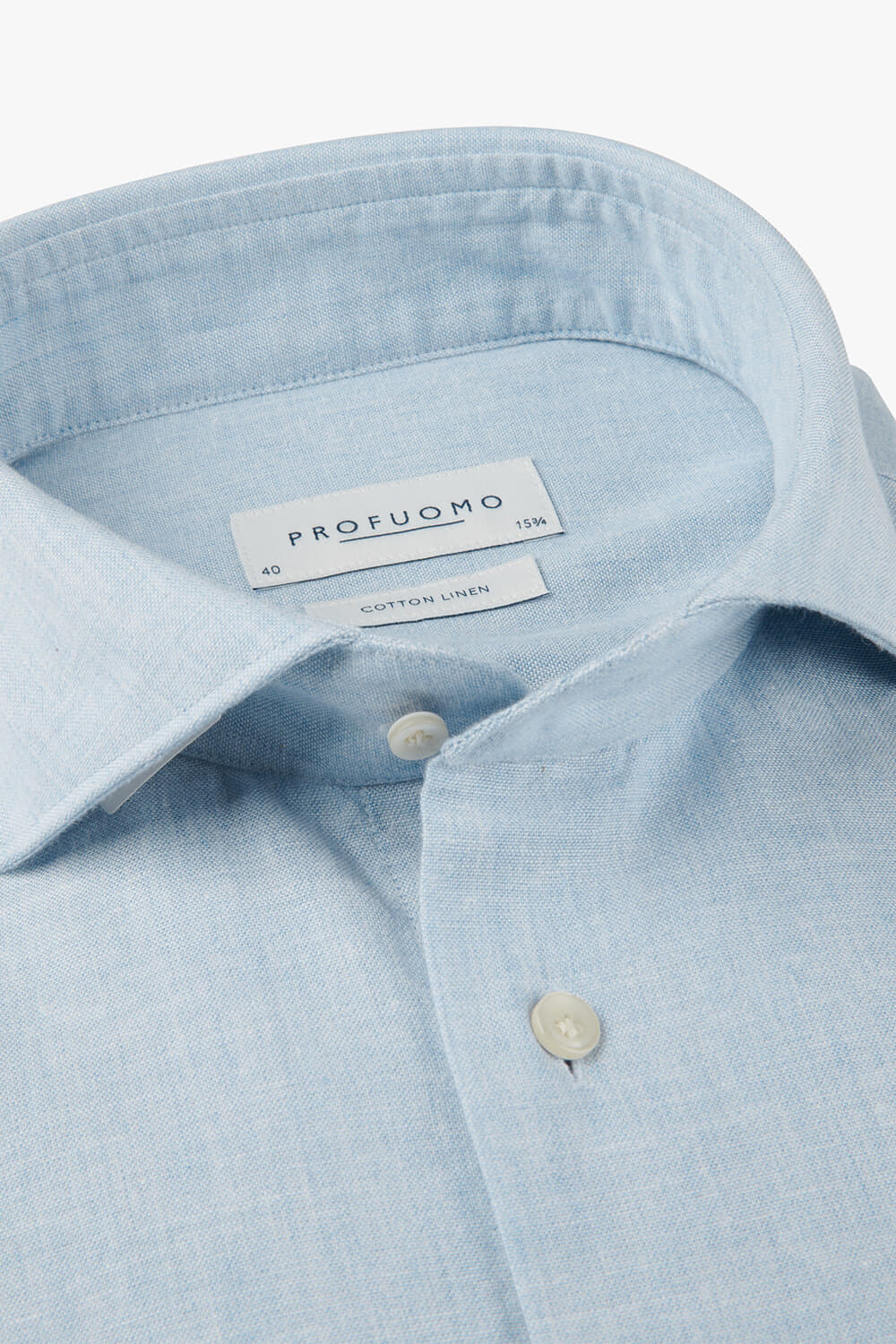 Overhemd Cutaway van Profuomo is een business overhemd met effen, lichtblauwe stof en subtiele structuur. De spreidkraag met puntkraag, knoopsluiting en manchetten met knopen geven een nette uitstraling. Voorzien van voorzakken. Combineer met een donker pak en leren riem.