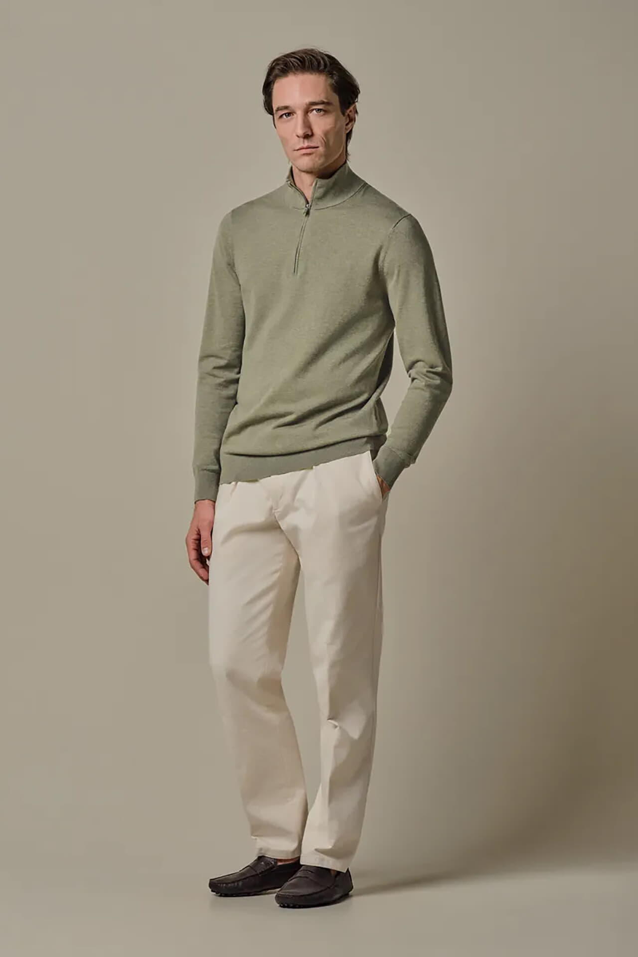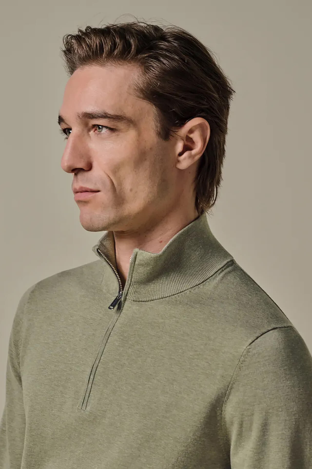 De trui van Profuomo straalt stijl en comfort uit. Met een opstaande kraag en ritssluiting biedt het een casual en verfijnde uitstraling. De ribgebreide mouwboorden zorgen voor een perfecte pasvorm. Deze effen trui is ideaal voor elke gelegenheid en een tijdloze toevoeging aan elke garderobe.