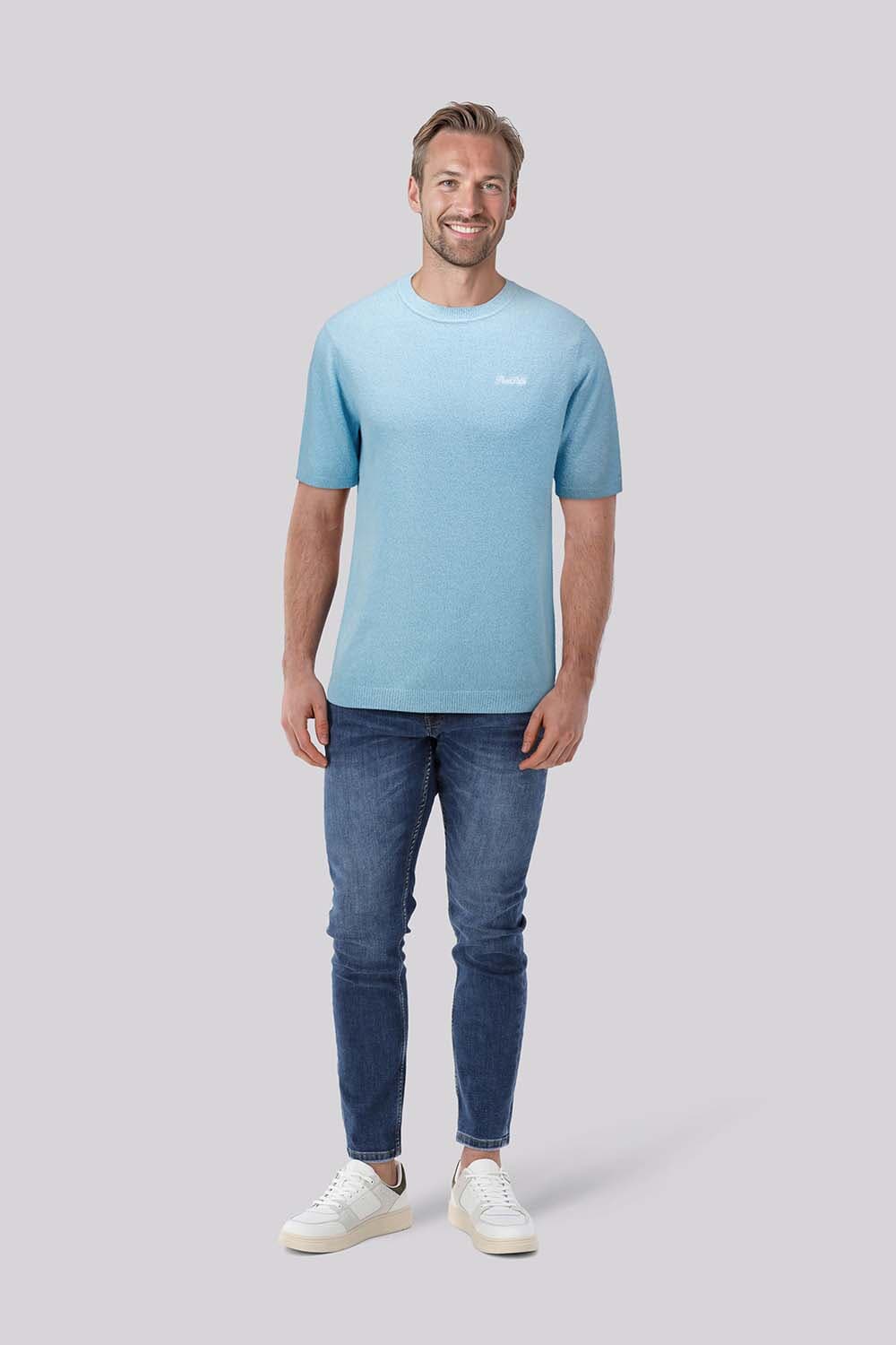 T-shirt van Pure Path met ronde hals, regular pasvorm en korte mouwen. Het effen ontwerp heeft een subtiel logo op de borst en een fijngebreide structuur met ribboorden aan hals, mouwen en zoom. Draagt prettig en combineert makkelijk met jeans of chino voor casual dagen.