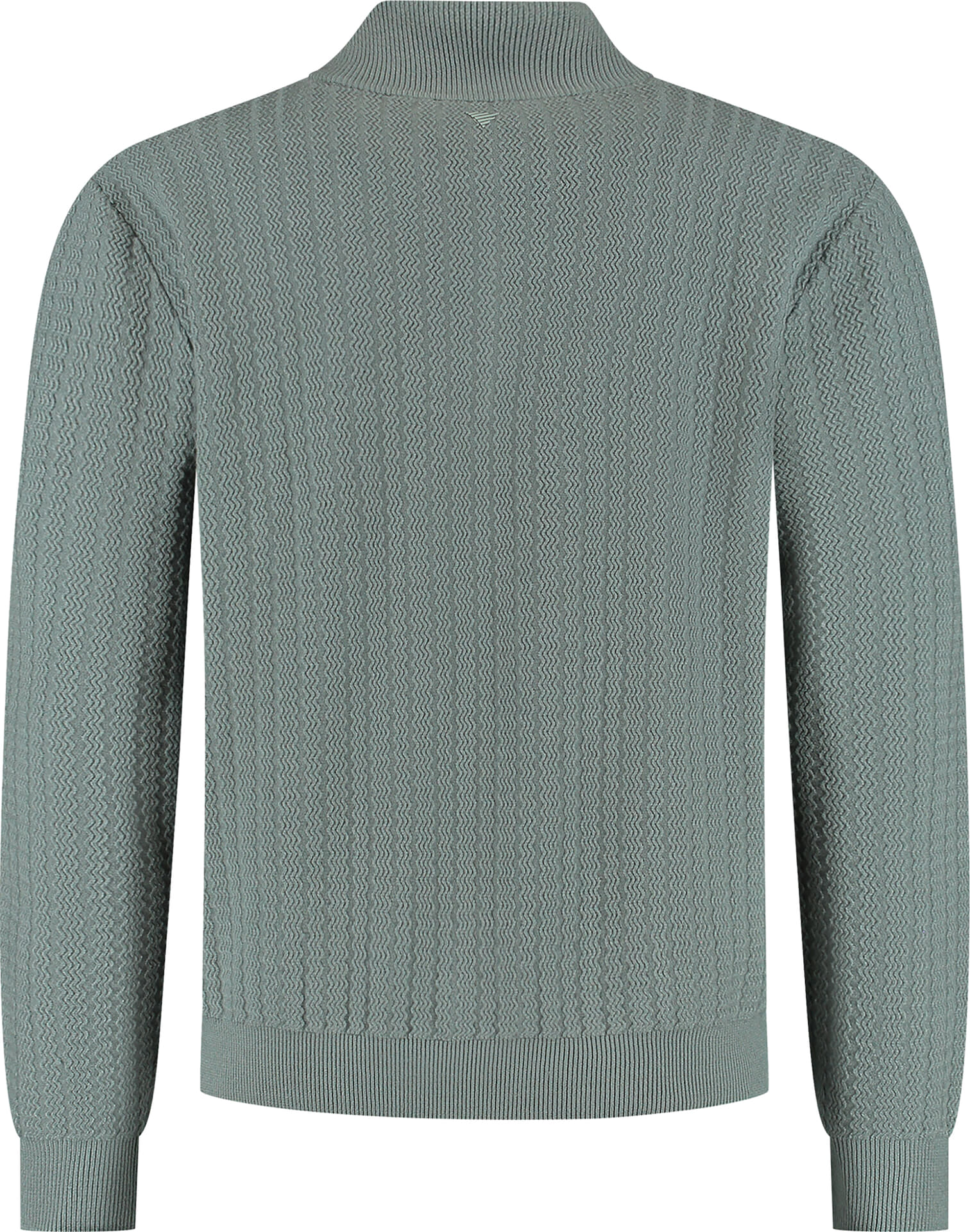 De Trui Zig Zag van Pure Path is een casual herentrui met een regular fit. Voorzien van een ribgebreid mouwboord, lange mouwen en een opstaande kraag met rits, biedt deze effen trui comfort en stijl voor elke gelegenheid. Ideaal voor een ontspannen uitstraling.